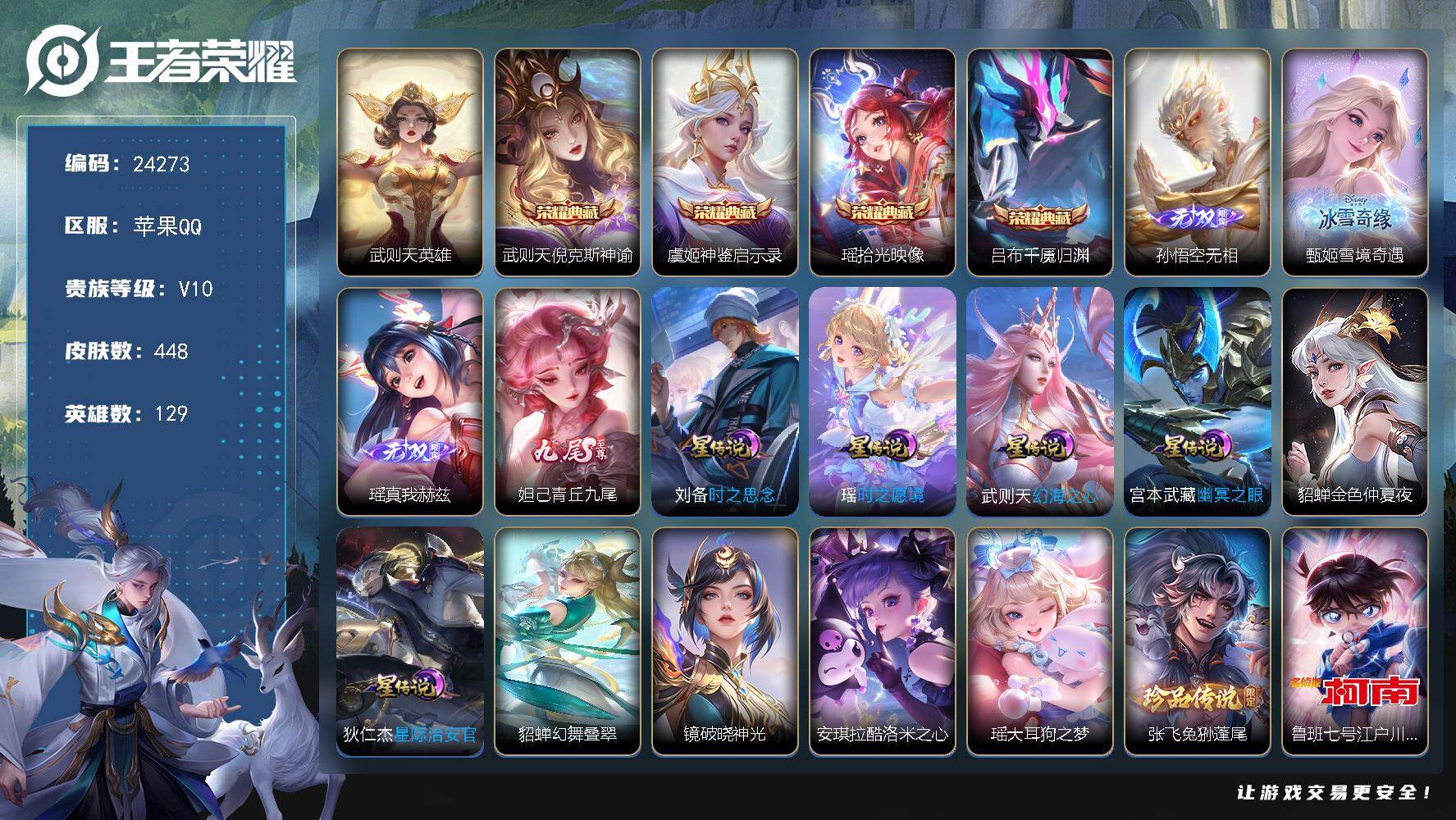 可换绑【V10精品女号·瑶全皮·妲己瑶甄姬孙悟空4无双·5典藏含武则天英雄·5
