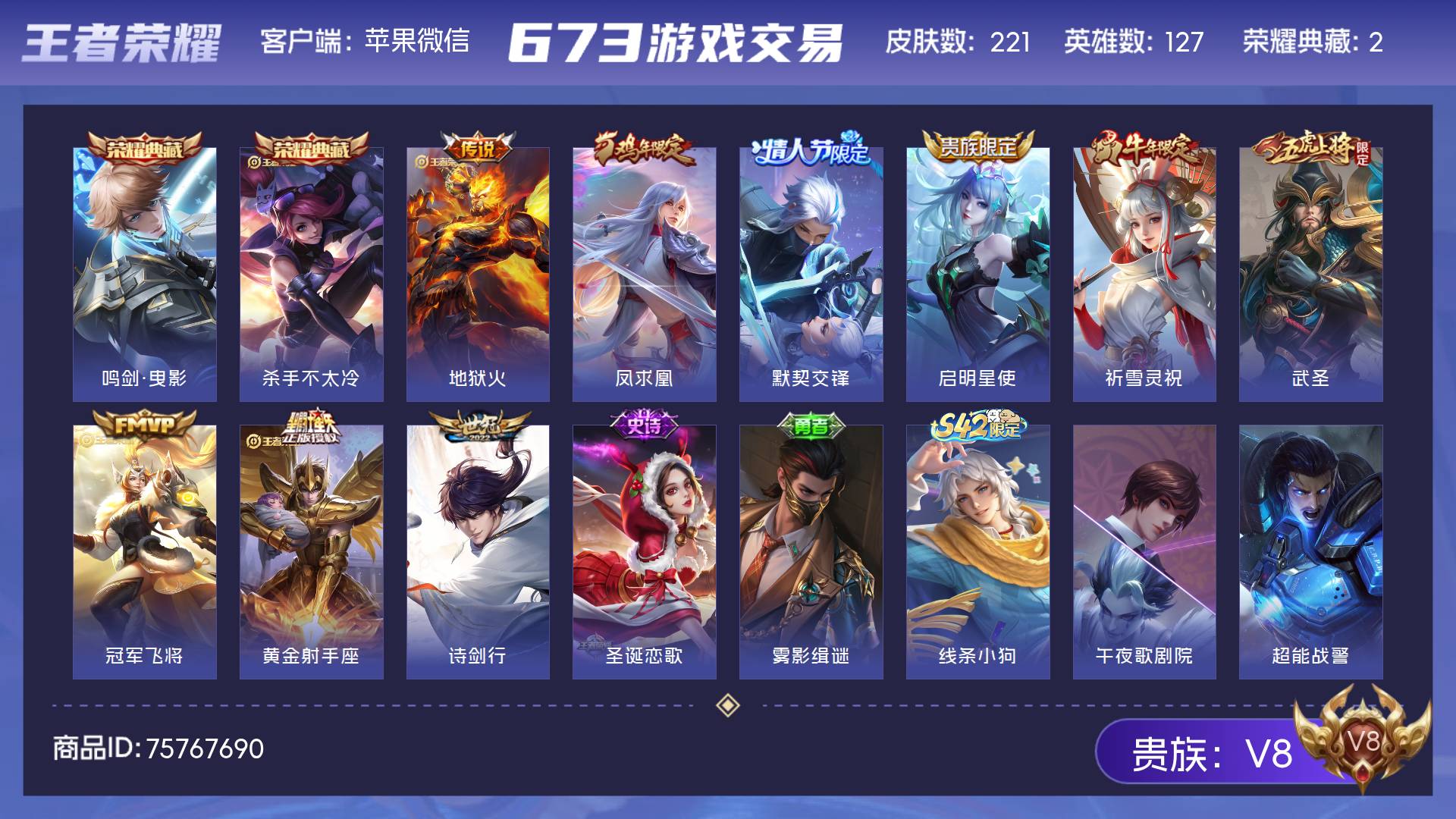 V8 皮肤221 英雄127 至尊星耀 荣耀典藏2 传说9 其他皮肤214