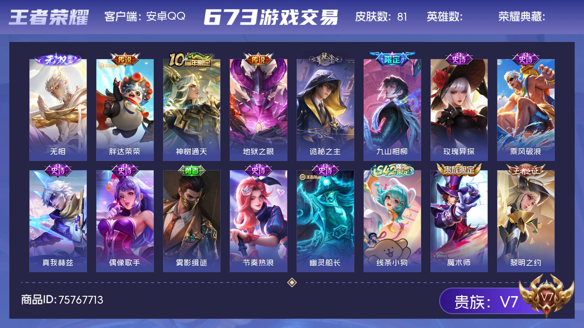 V7 皮肤81 至圣王者 无双皮肤2 传说8 其他皮肤71