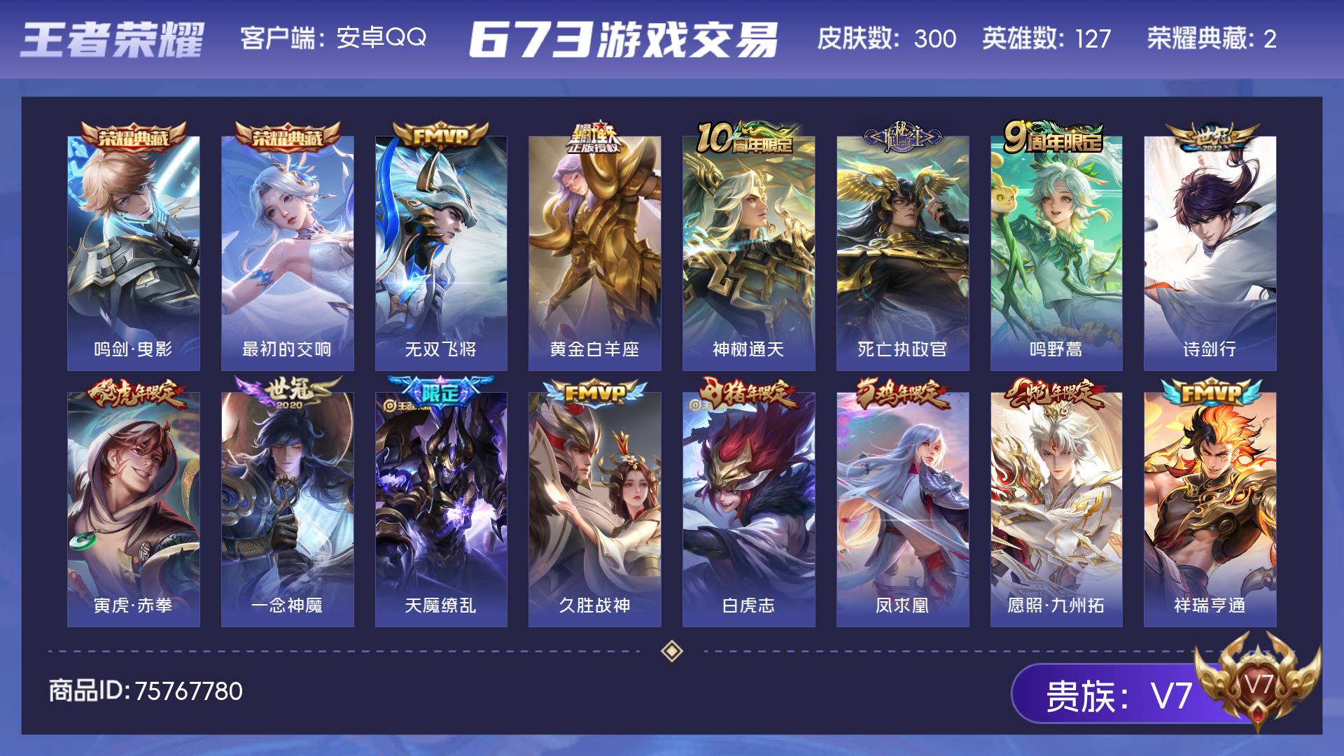 V7 皮肤300 英雄127 无双王者 荣耀典藏2 传说15 其他皮肤288