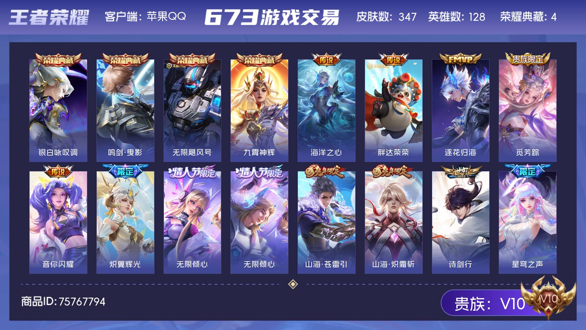 V10 皮肤347 英雄128 无双王者 荣耀典藏4 传说34 其他皮肤311