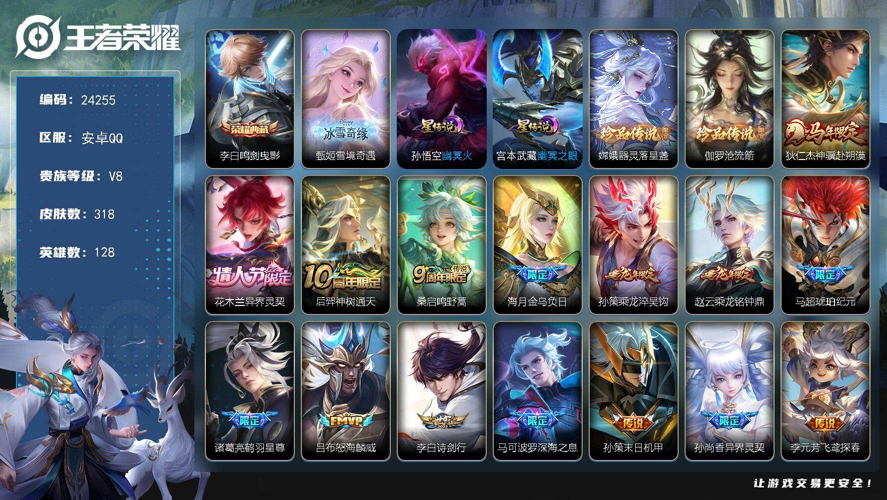 【224皮肤1水晶1星元3珍品6传说】安卓V区-126英雄