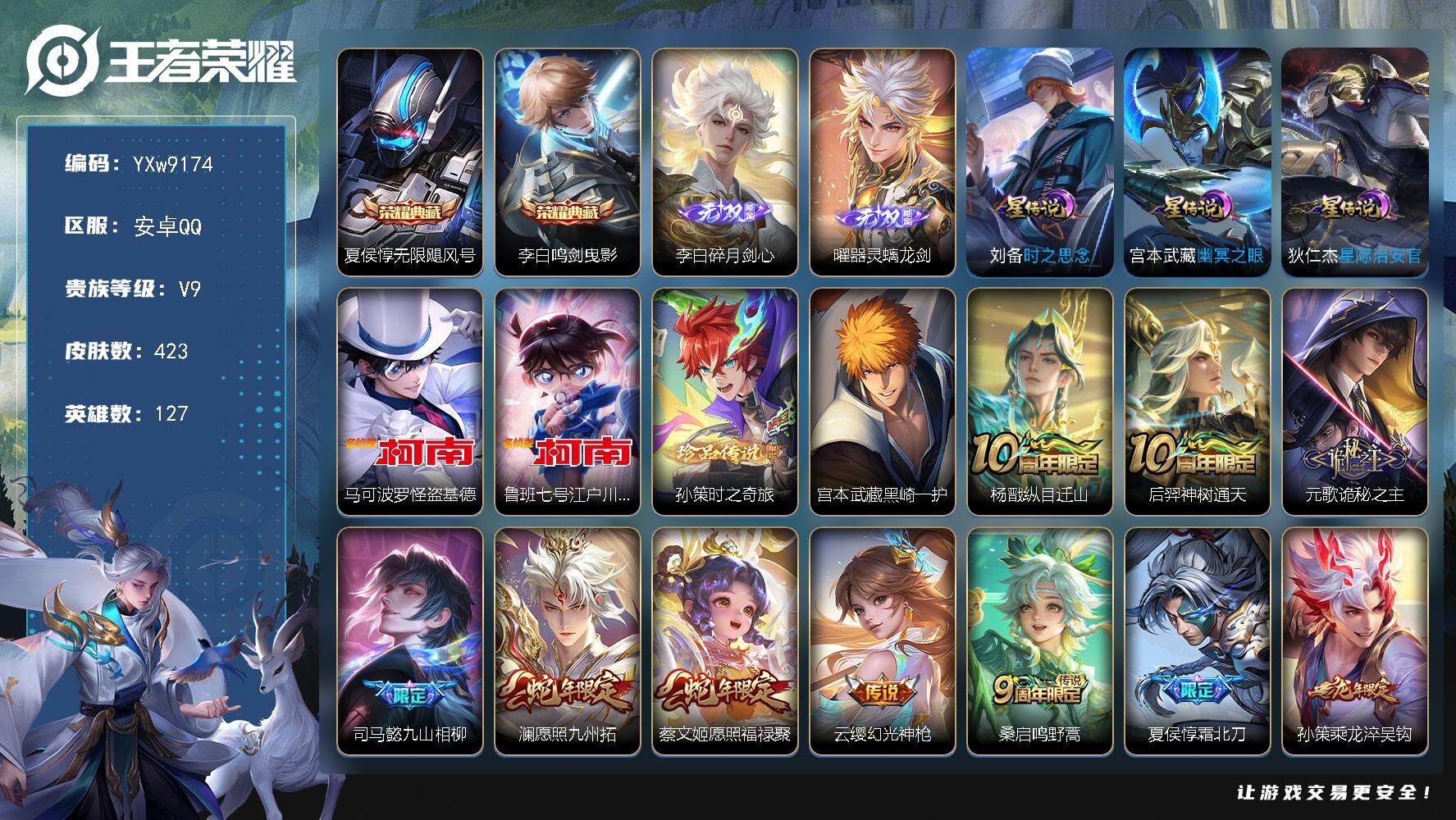 皮肤150 英雄126 传奇王者 荣耀典藏1 珍品传说1 传说9 其他皮肤39-【银白咏叹调/江户川柯南/至尊宝】150皮肤1典藏1珍品传说9传说 云诺千山