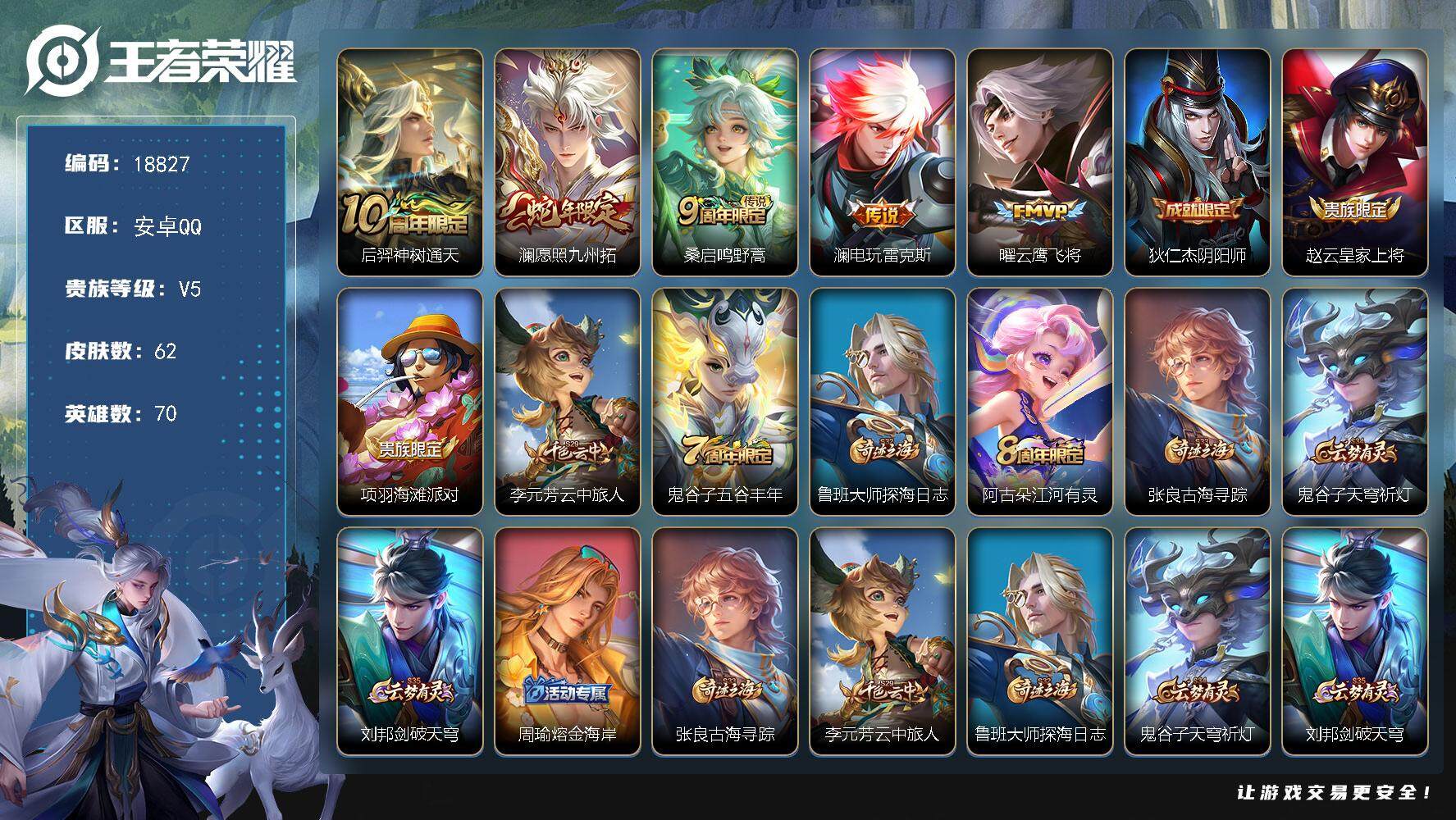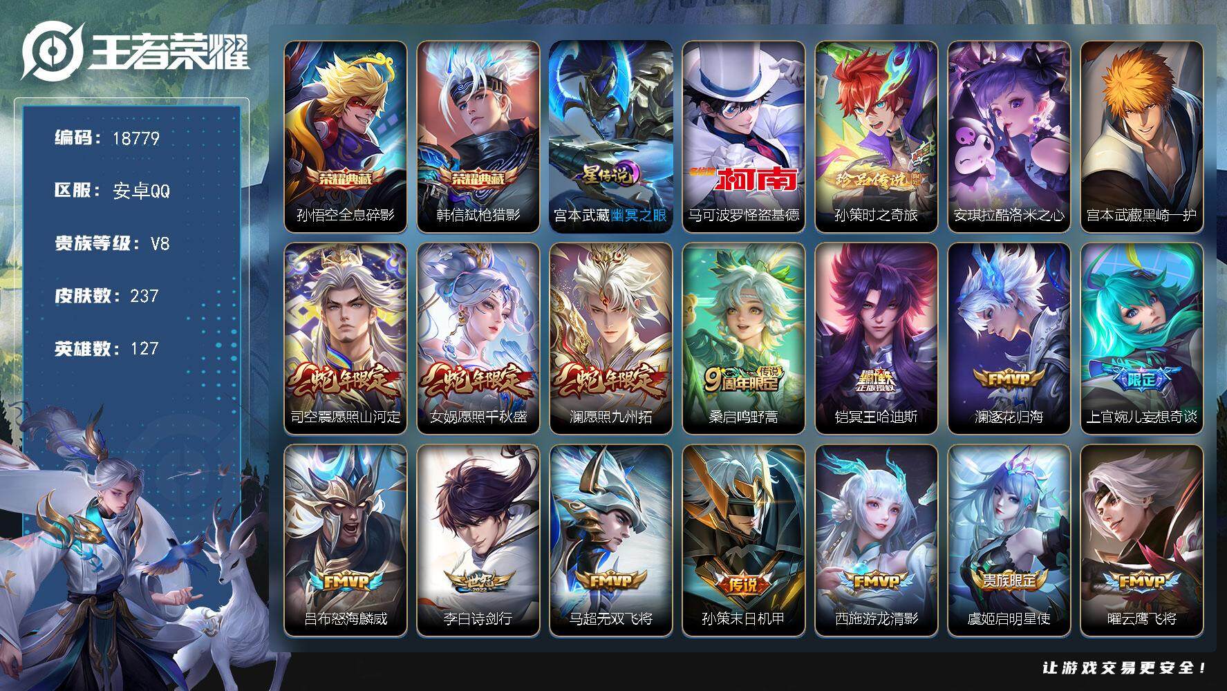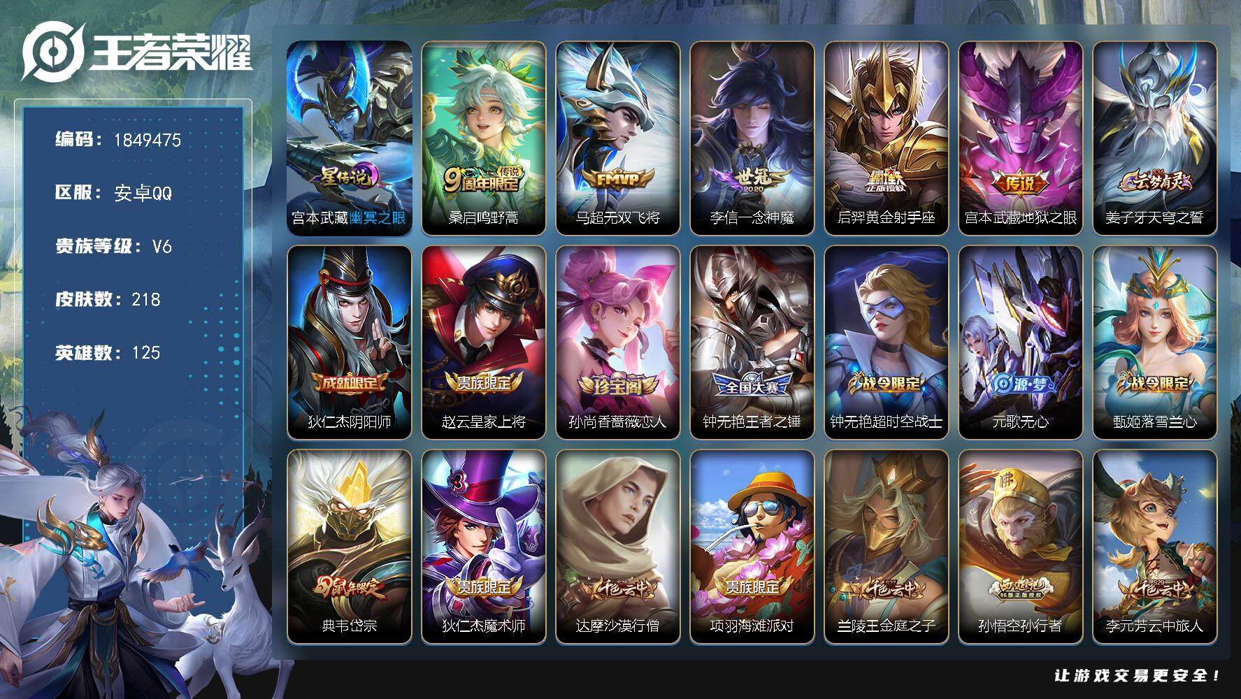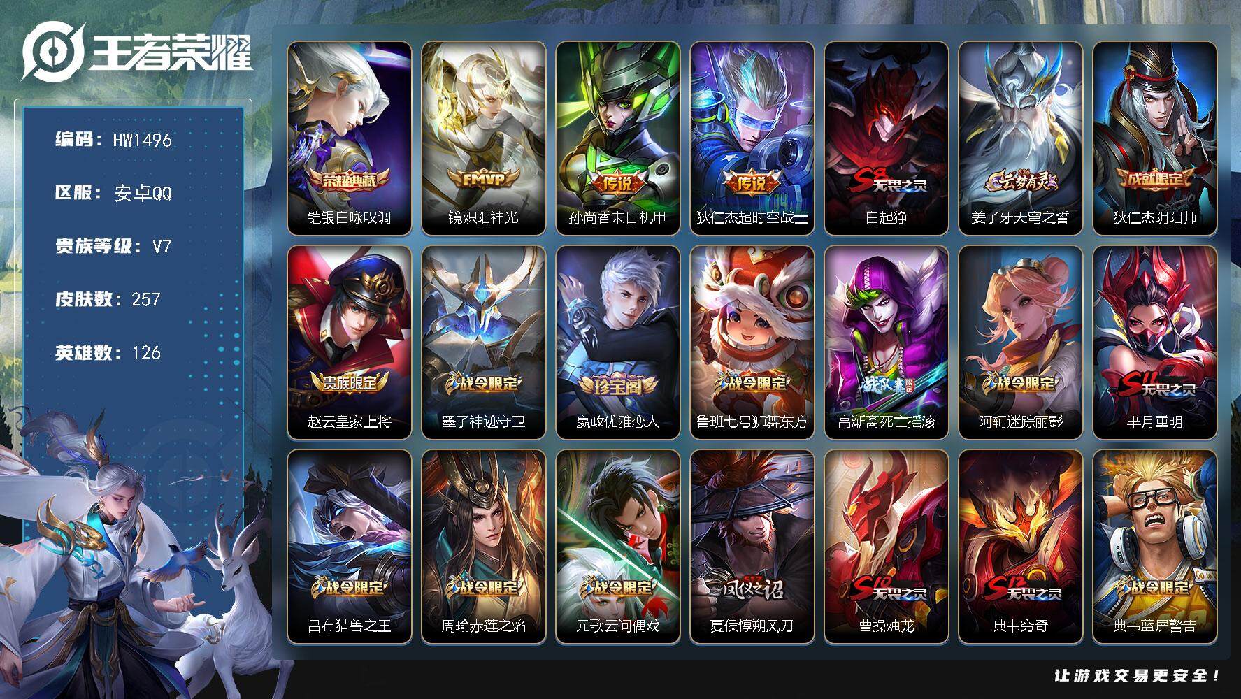安卓QQ 皮肤257 英雄126 典藏1 传说3 其他皮肤87 最强王者-银白咏叹调 至尊宝 V7-257皮肤1典藏3传说51史诗 炽阳神光 末日机甲