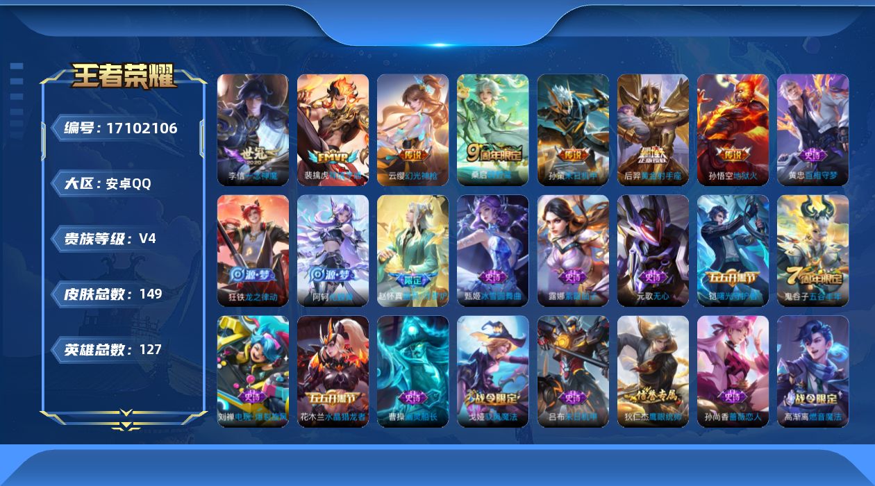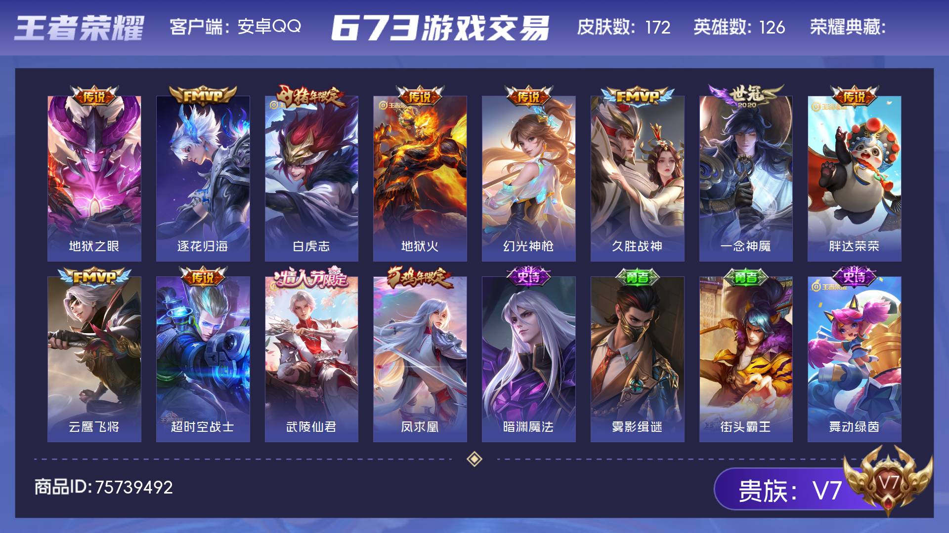 V7 皮肤172 英雄126 最强王者 星传说2 传说12 其他皮肤165