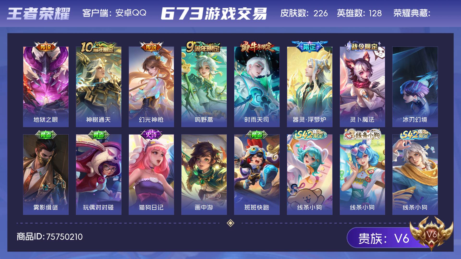 V6 皮肤226 英雄128 永恒钻石 传说5 其他皮肤224