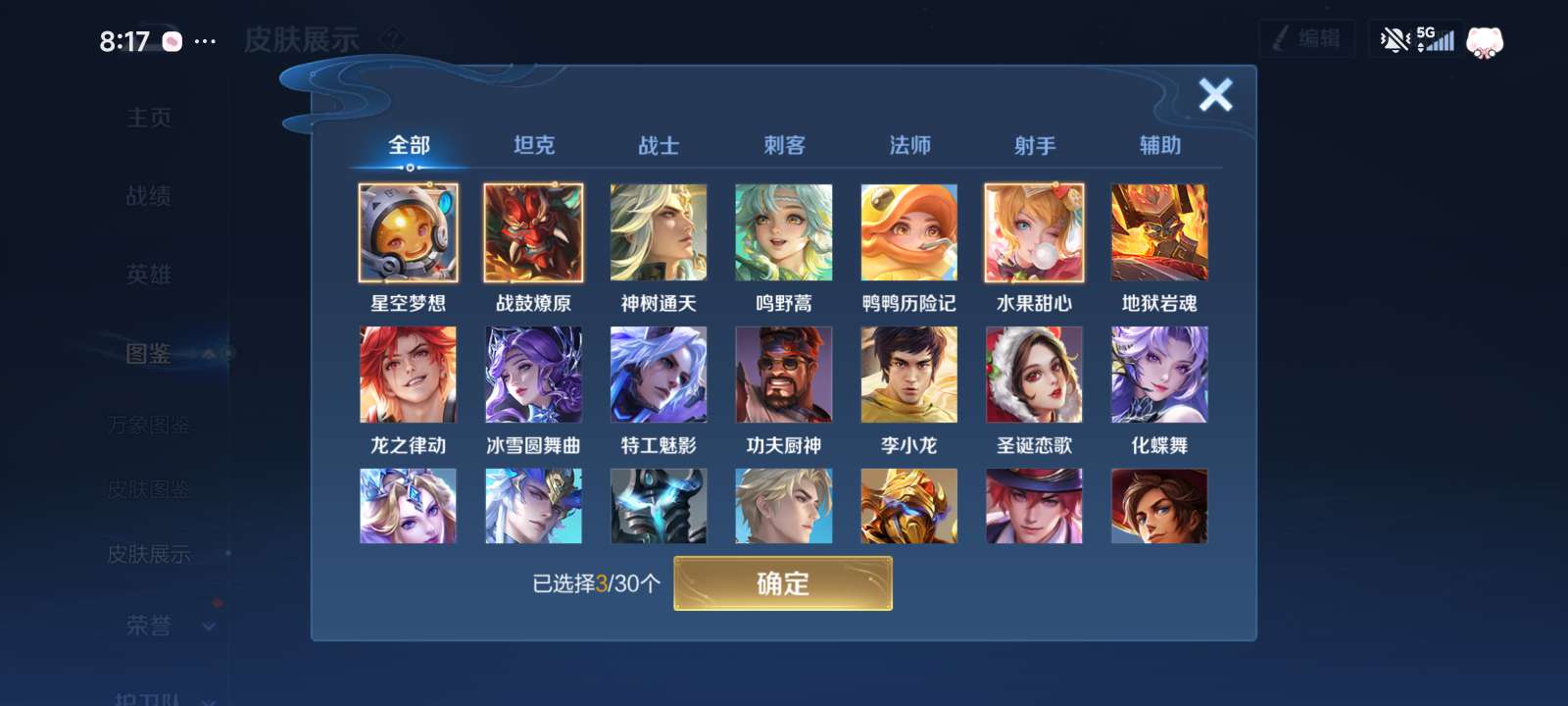 187皮-2典藏-0无双-0珍品传说-5传说-1全皮英雄