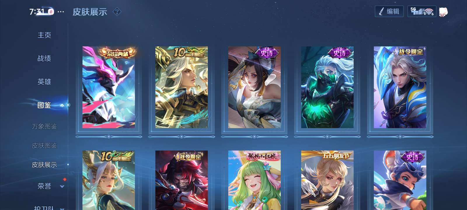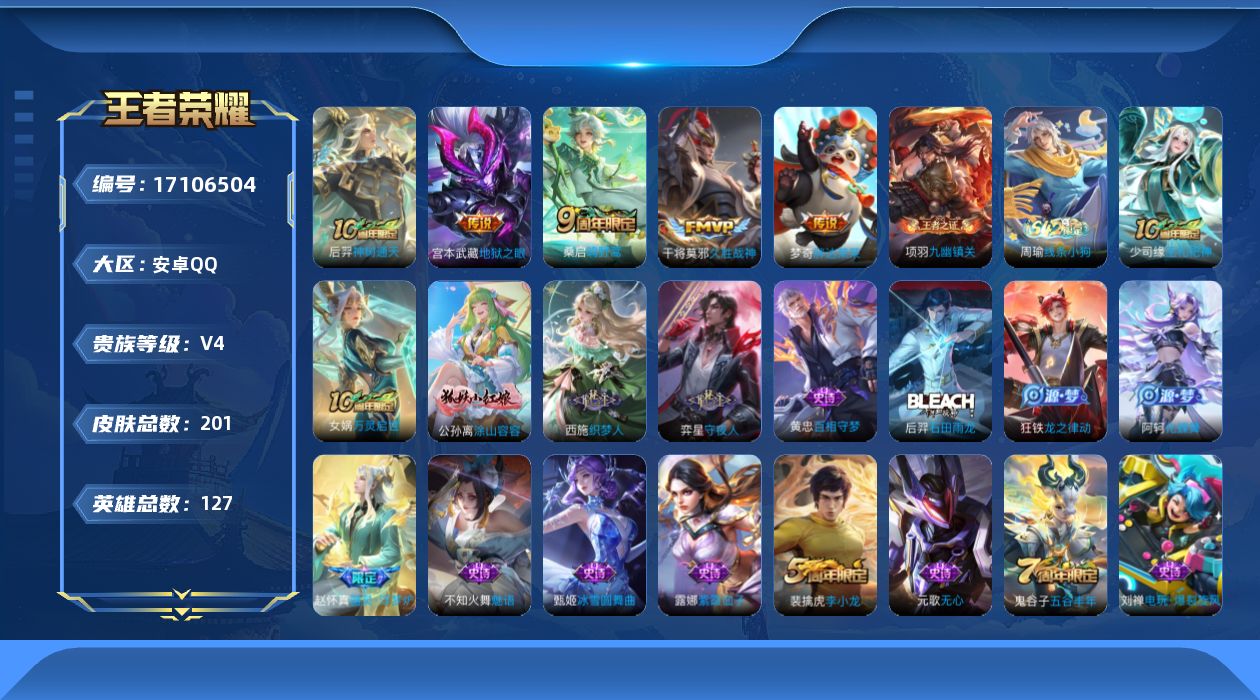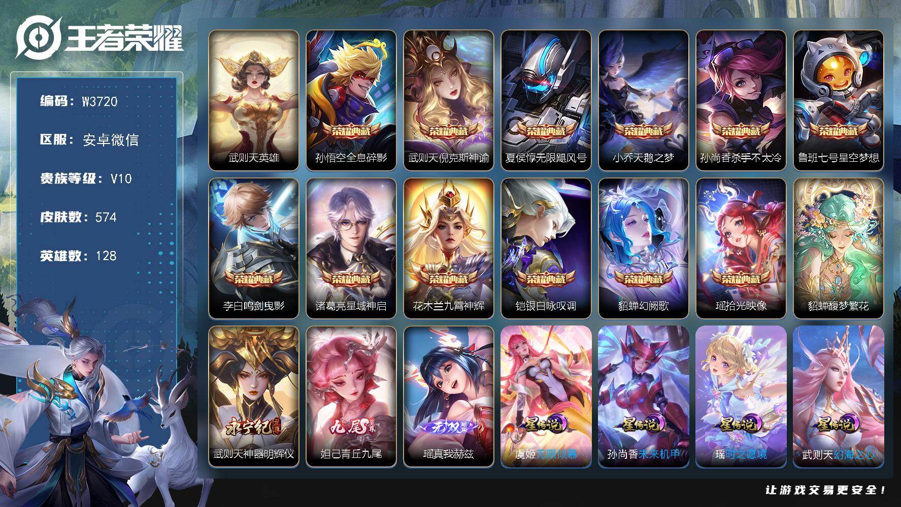 可二次-贵10-128英雄-574皮肤-13典藏-1珍品无双-3无双-2珍品传说-6星元-101传说-238限定