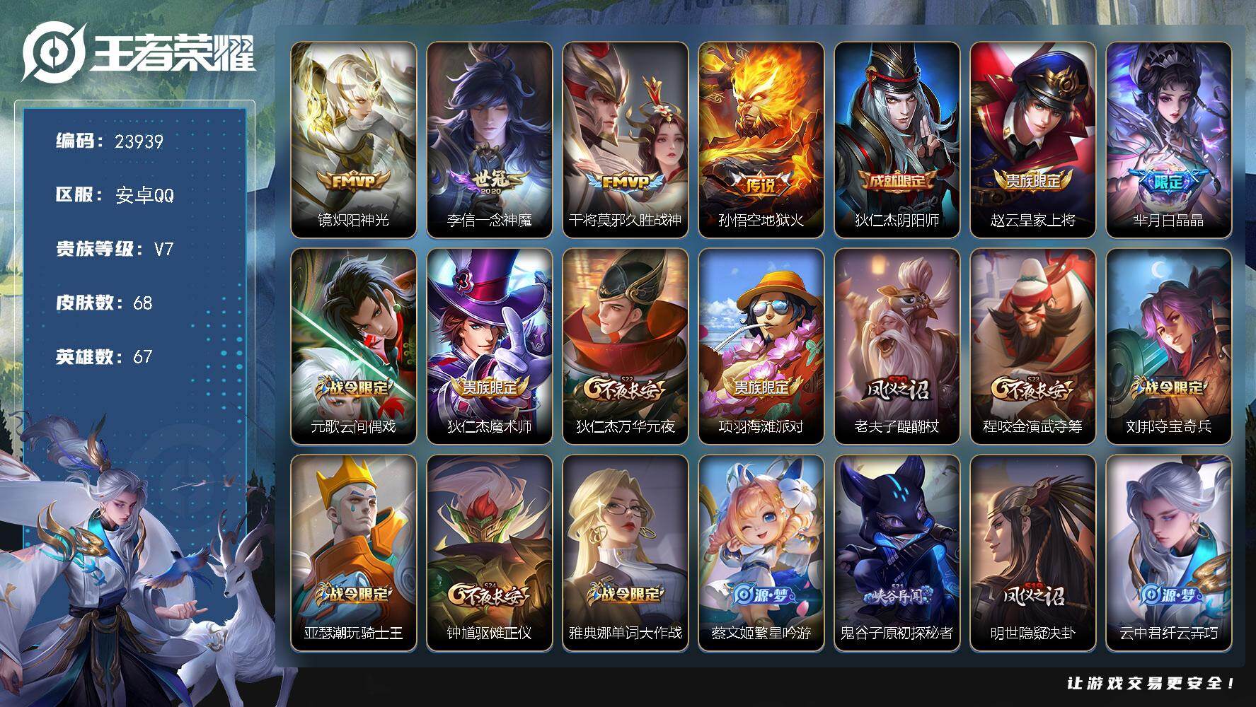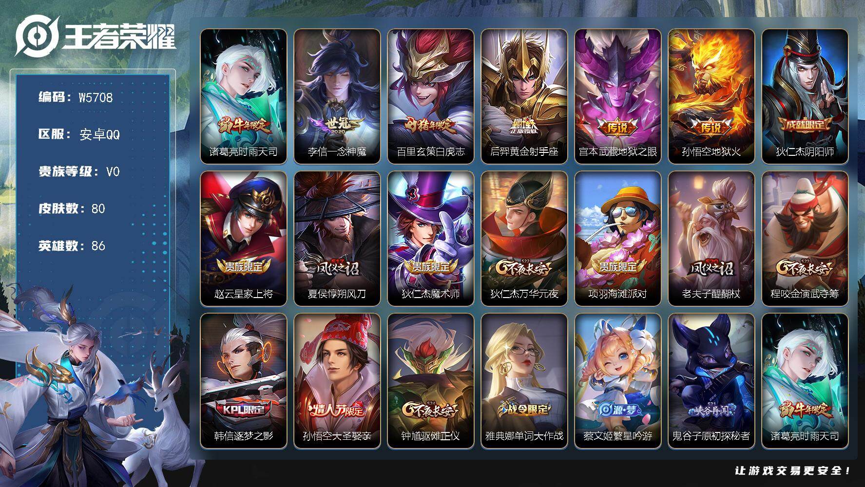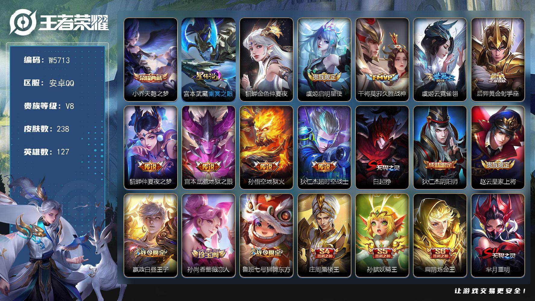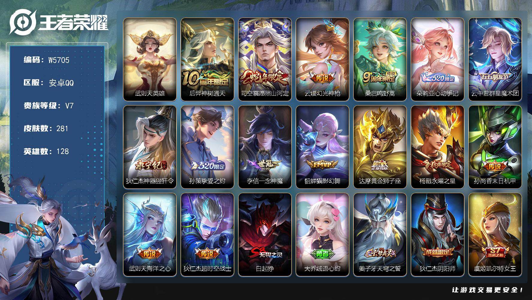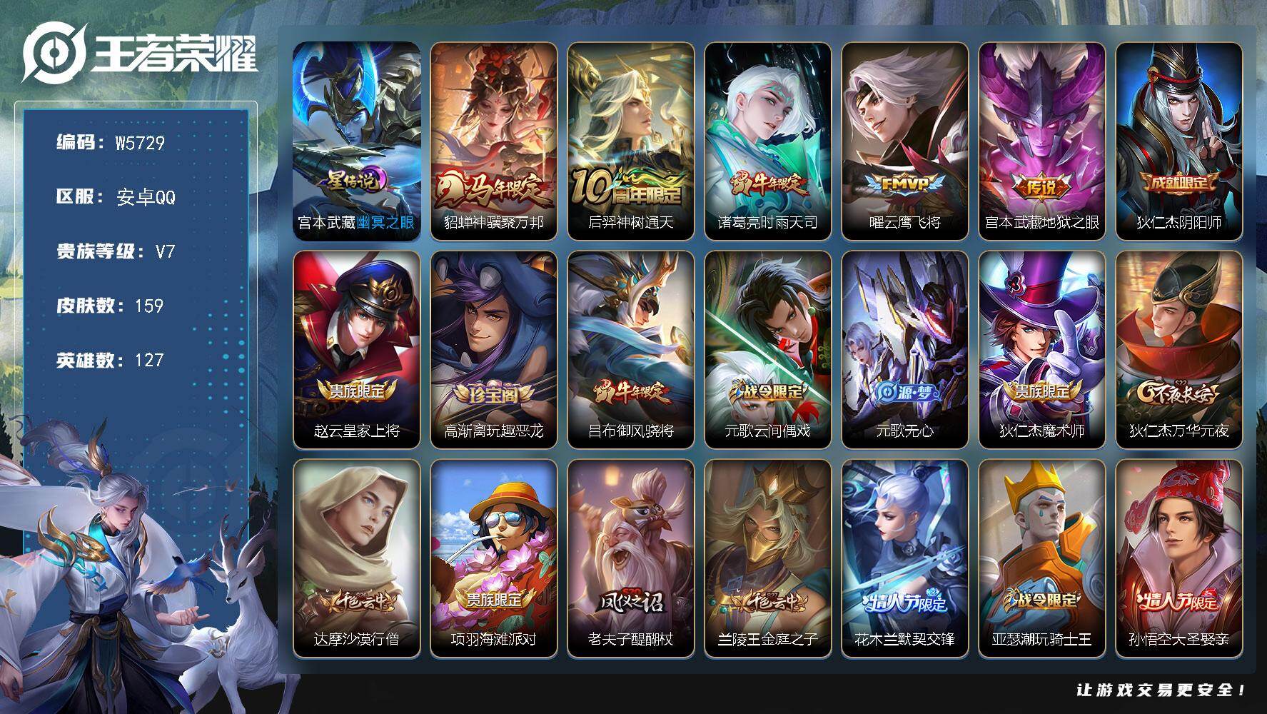 【W5729】QQ功能限制-安卓Q区-无二次-贵7-127英雄-159皮肤-5