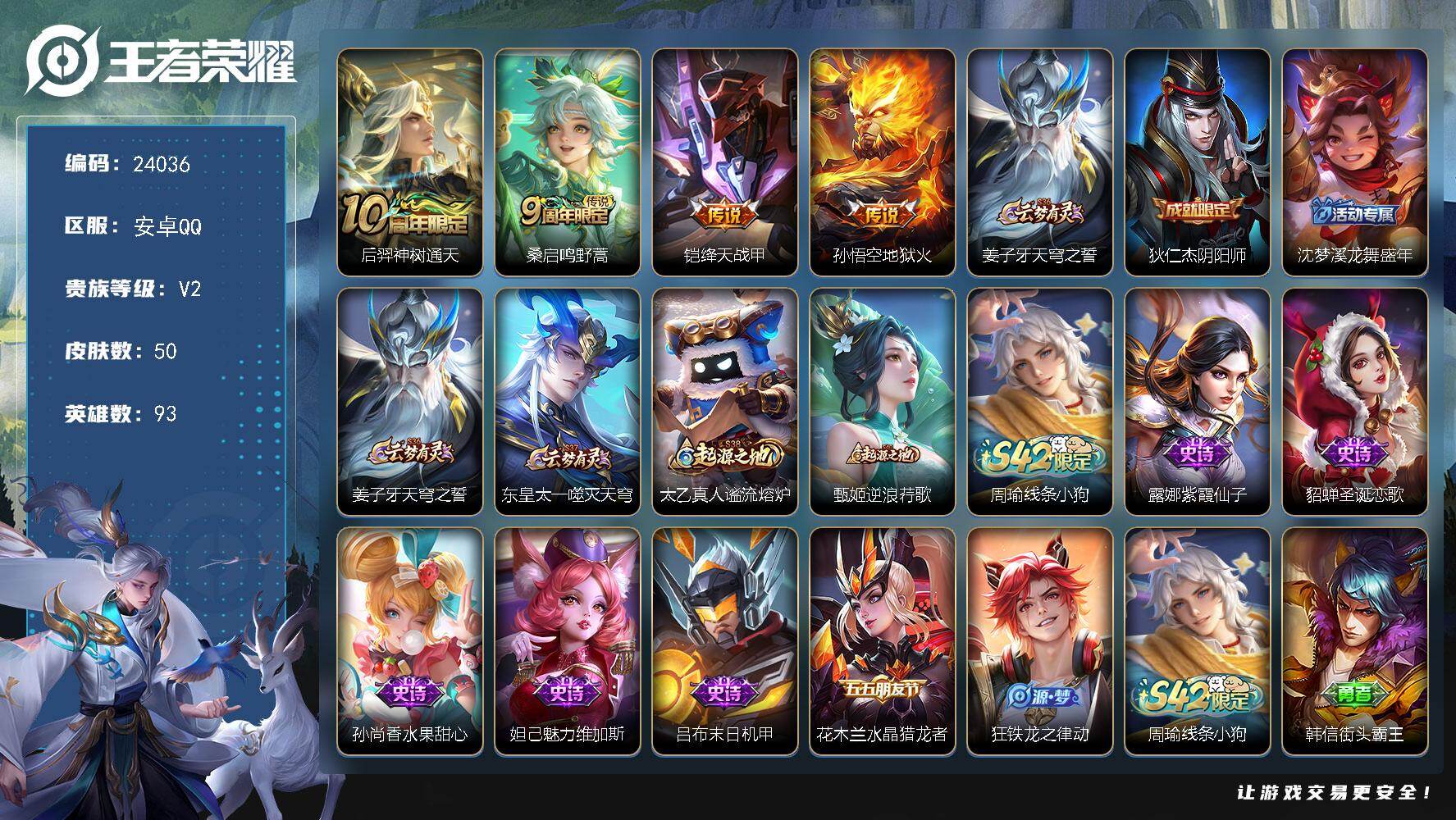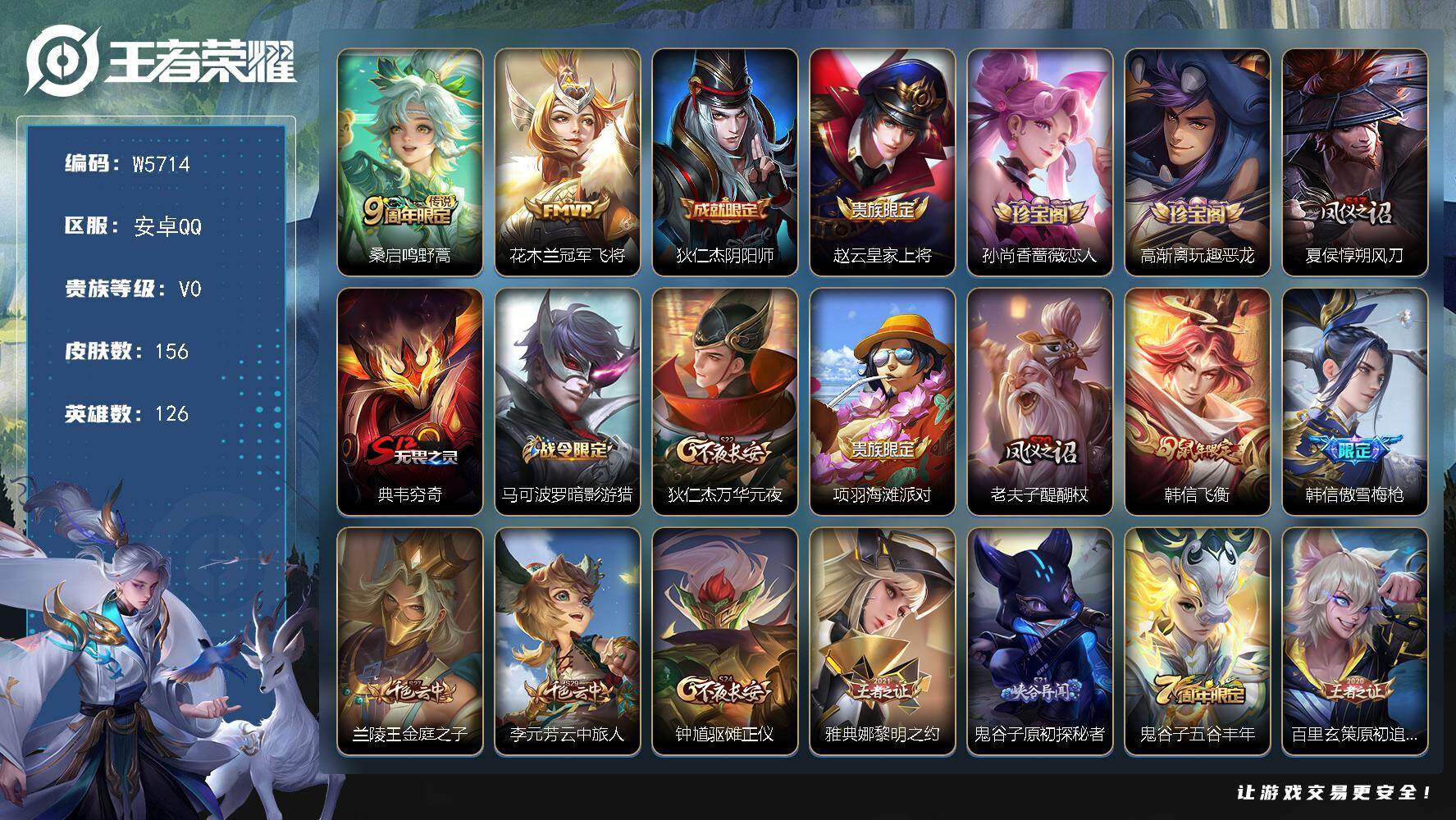 【W5714】安卓Q-可二次-贵5-126英雄-156皮肤-2传说-41限定-