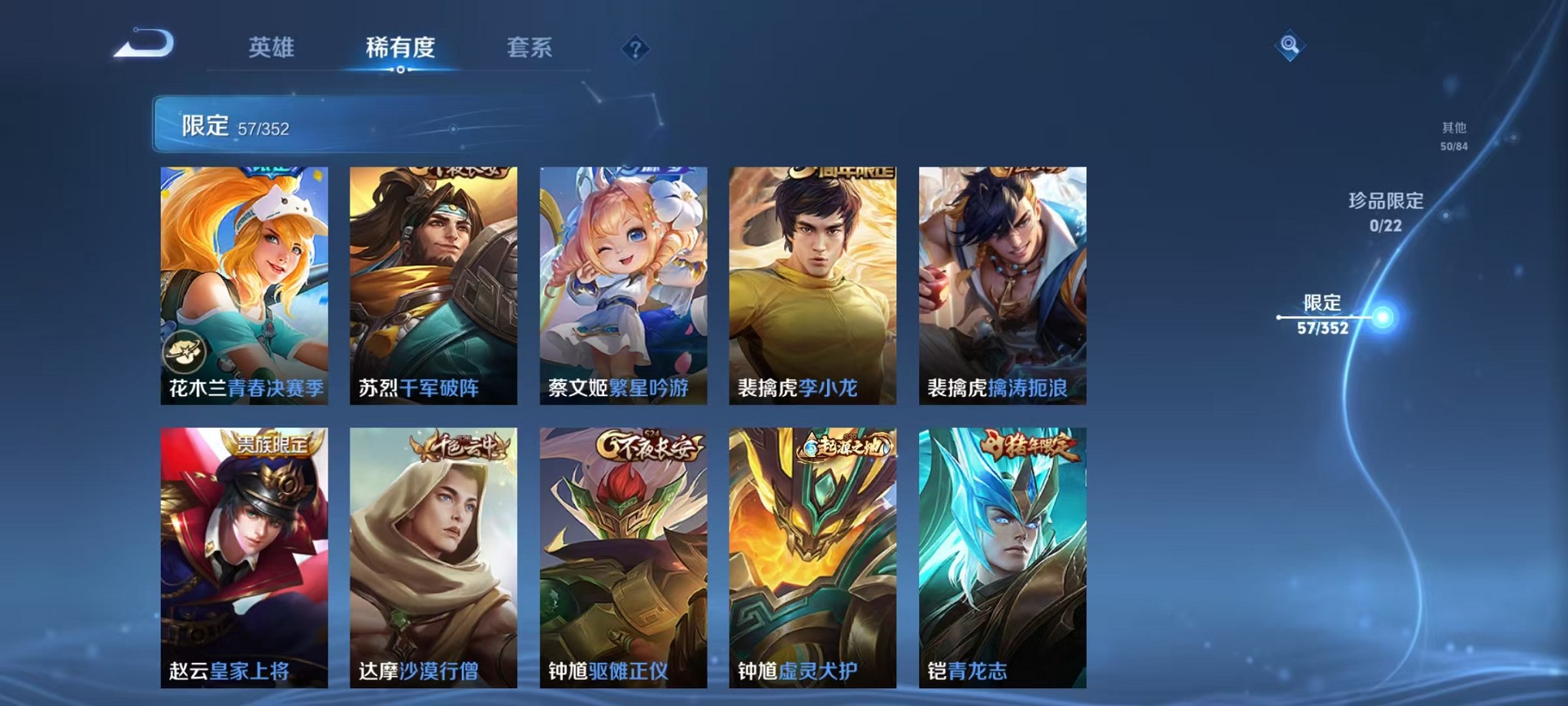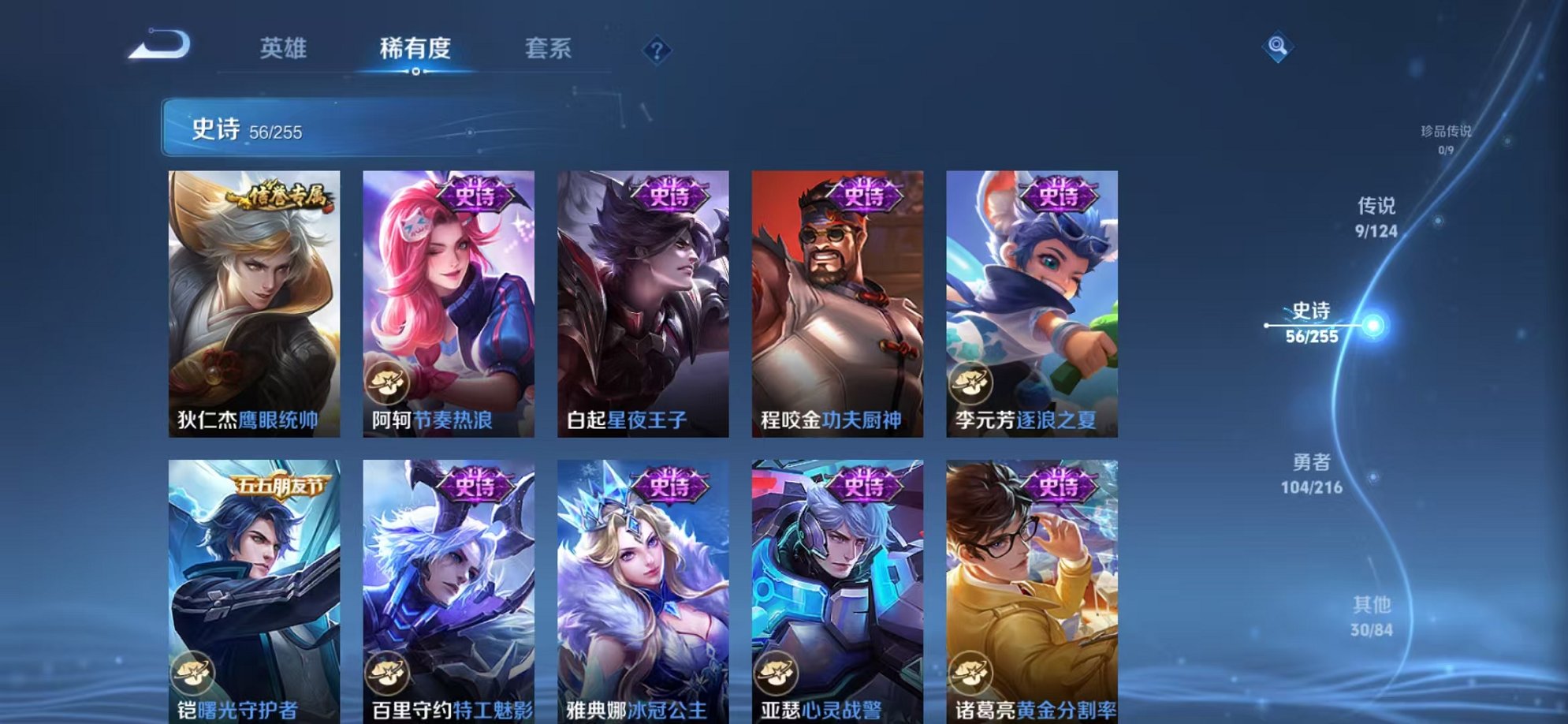 安卓QQ/荣耀王者/408皮肤/126英雄/3典藏/0珍品无双/1无双/2珍品传说/20传说/119
