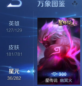 364皮肤1水晶2星元2珍品28传说