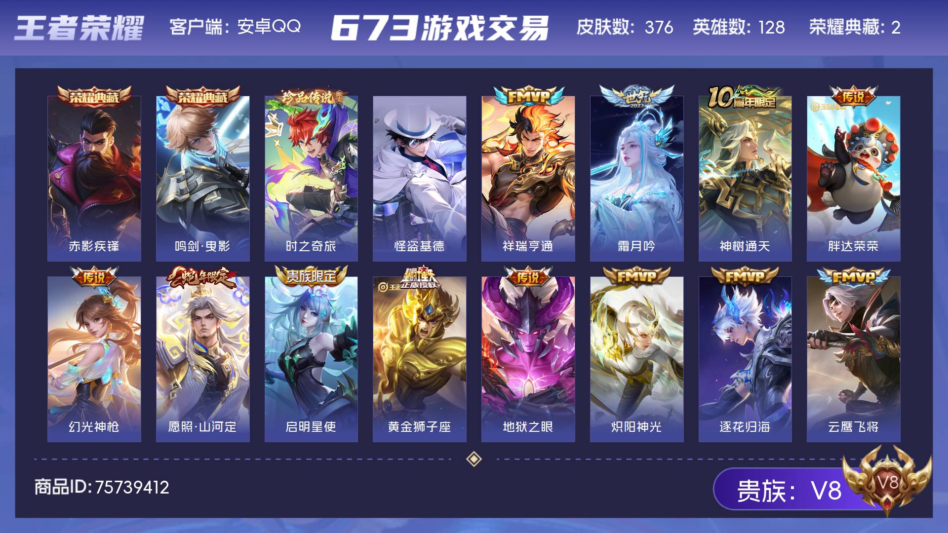 V8 皮肤376 英雄128 永恒钻石 荣耀典藏2 珍品传说2 传说13 其他皮肤363