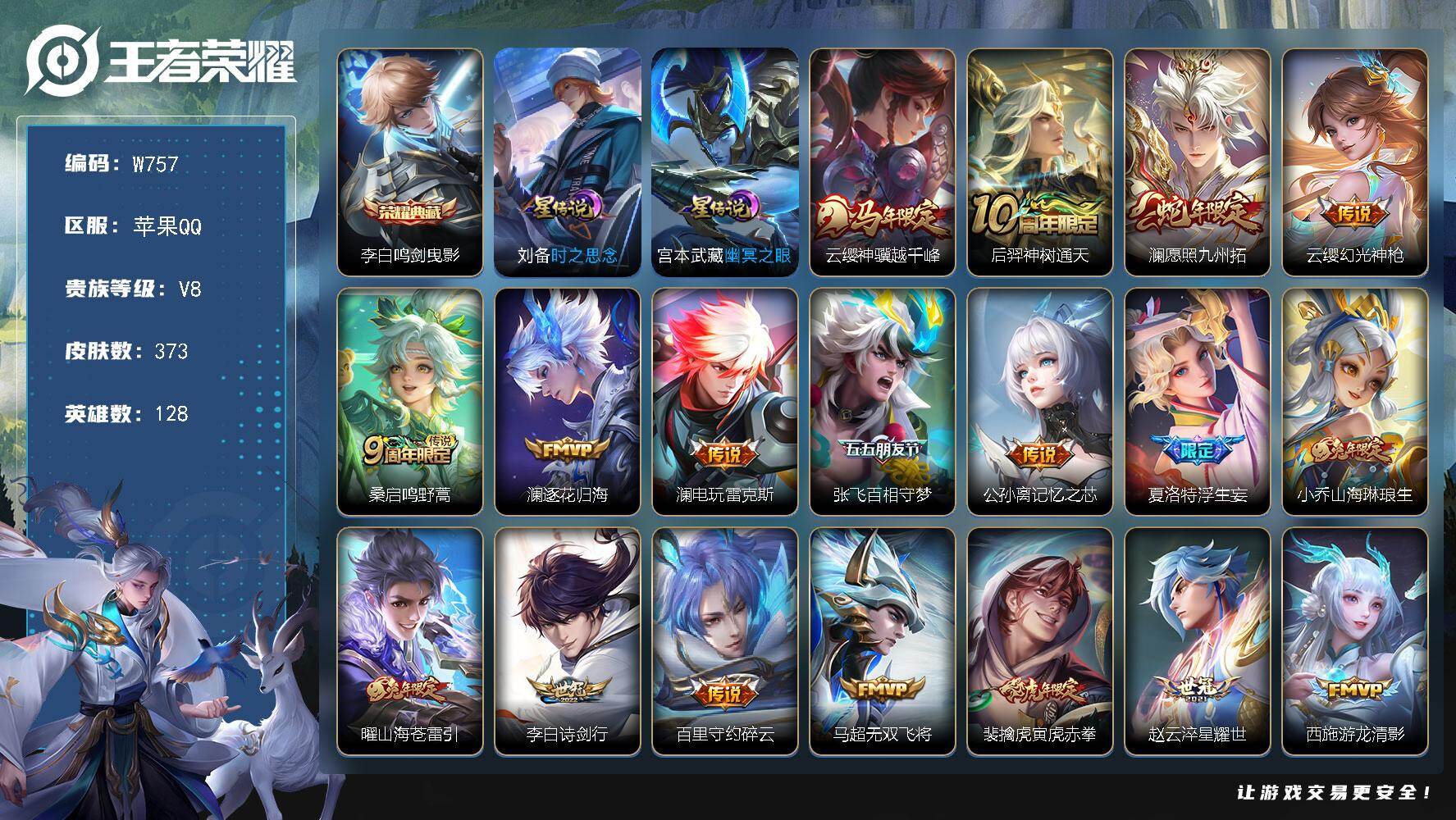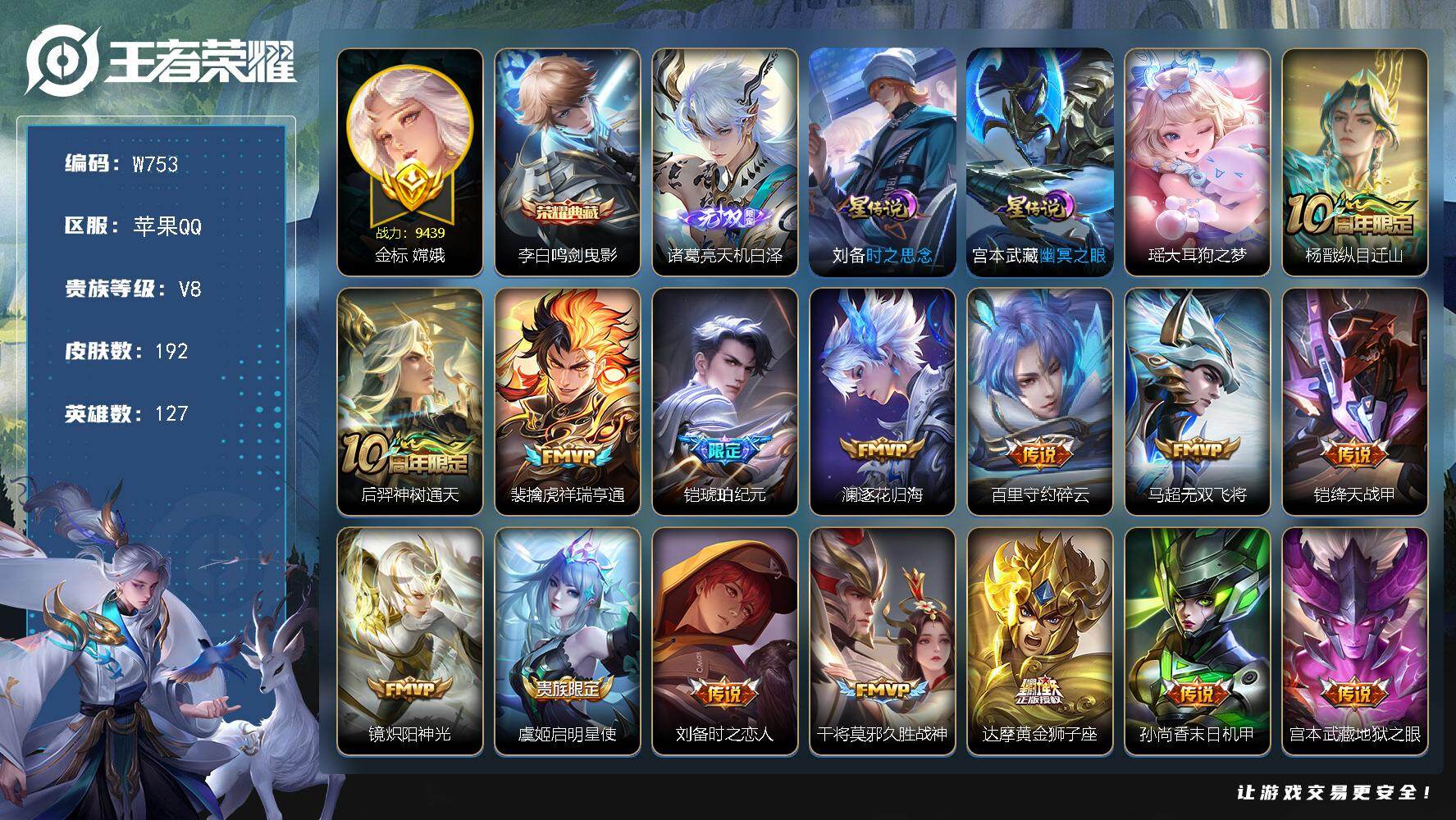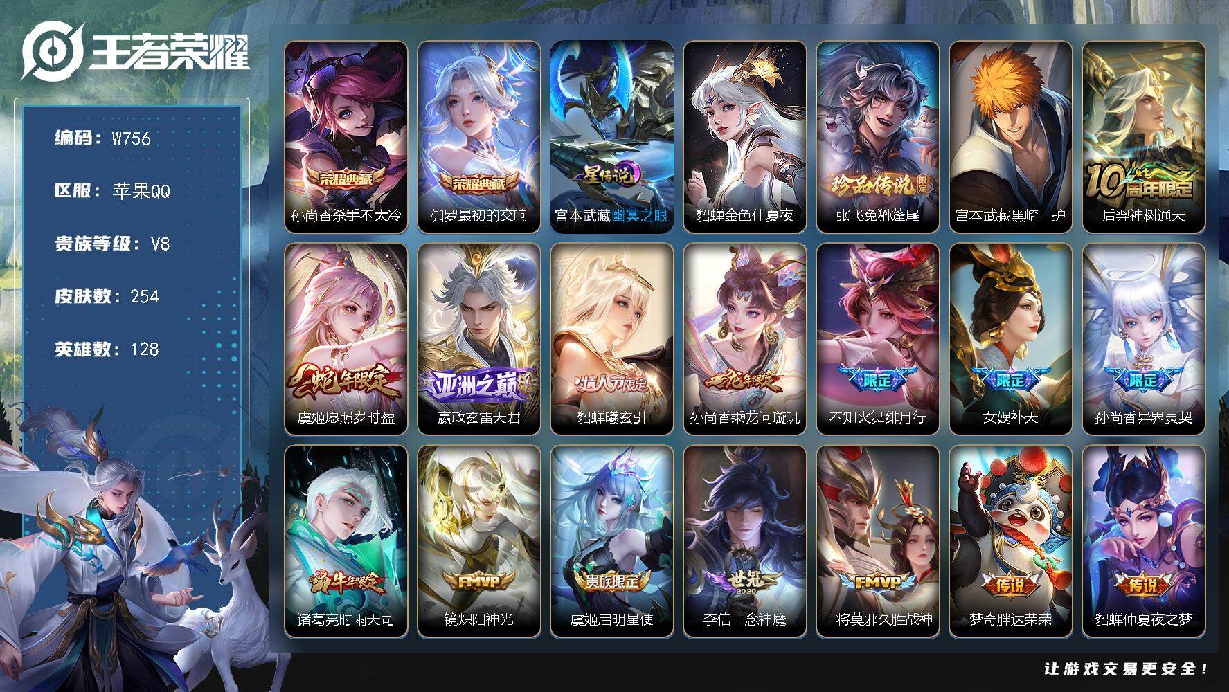 iOS/金标省10嫦娥/V8-192皮肤1典藏1无双1珍品传说17传说【荣耀