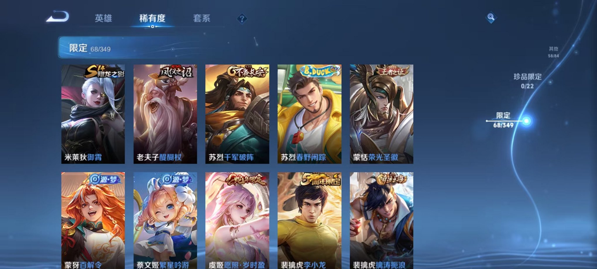 安卓QQ 皮肤227 英雄125 典藏1 传说5 其他皮肤81 至尊星耀-
