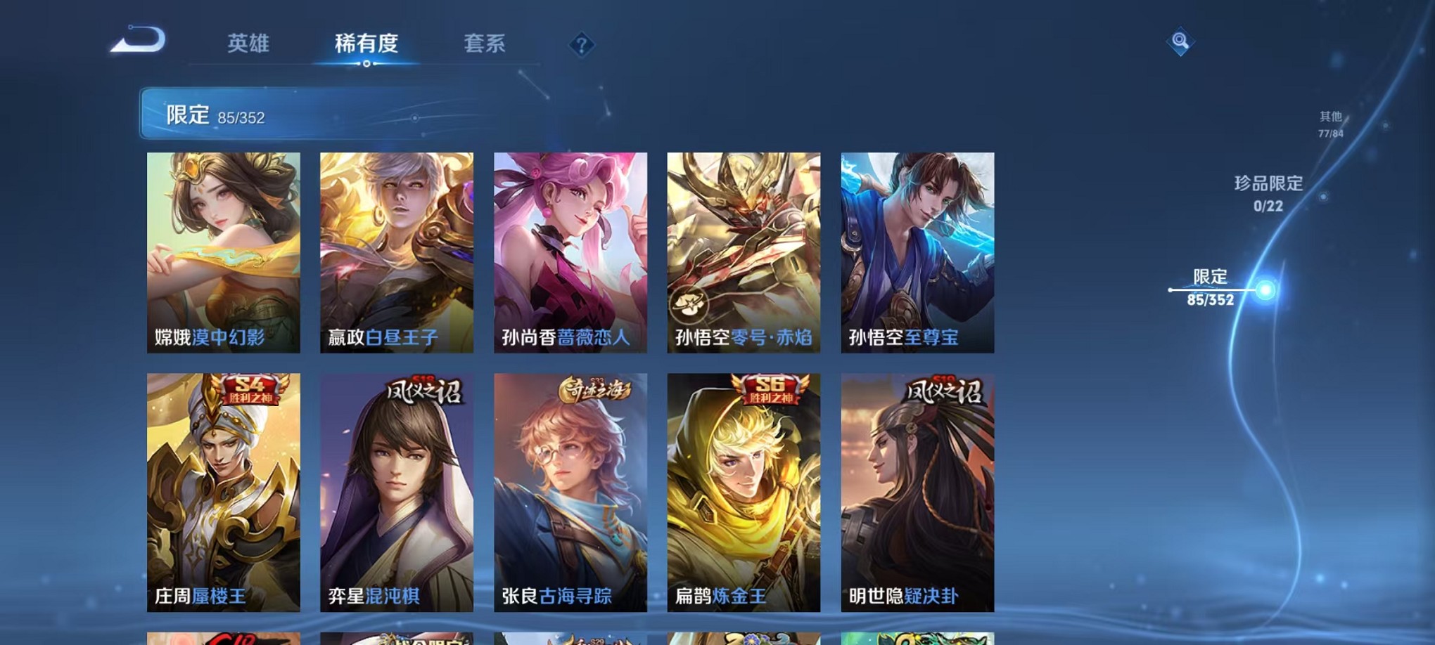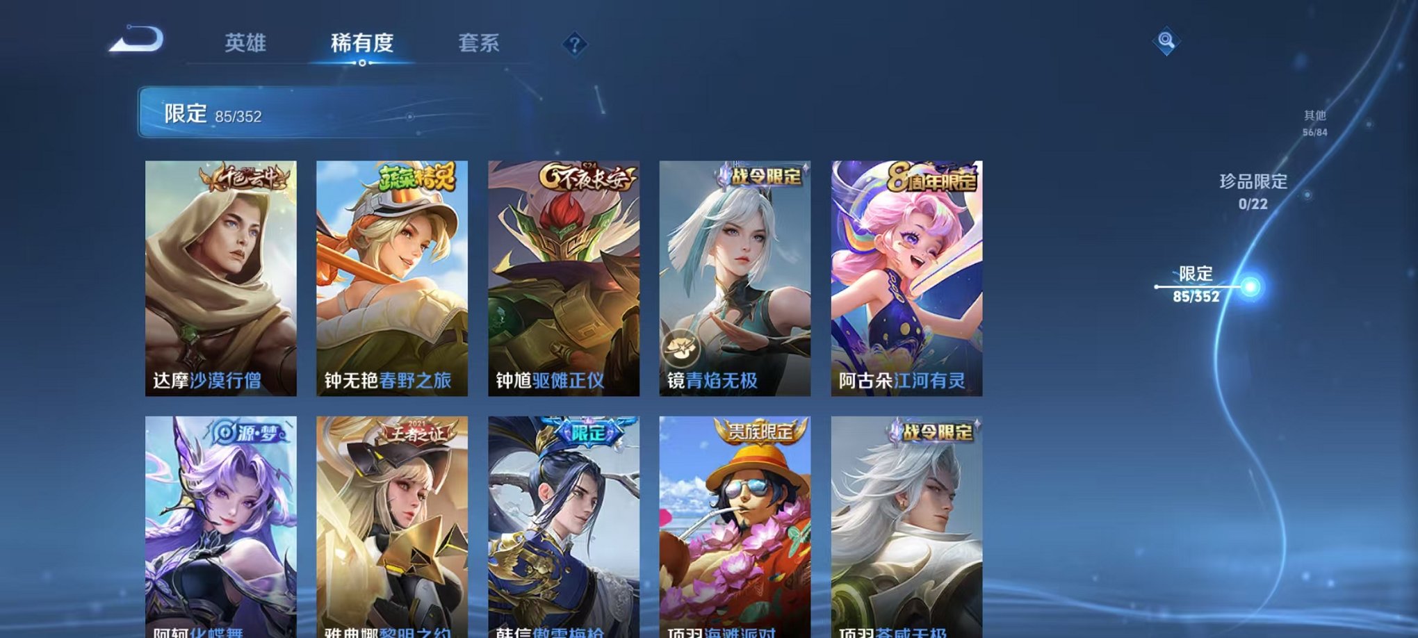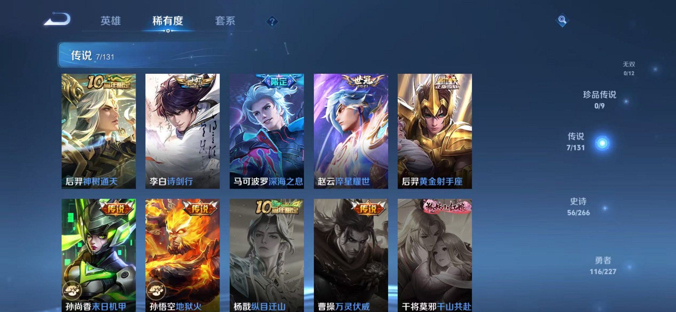 安卓QQ 皮肤268 英雄126 典藏1 传说8 其他皮肤87 无双王者-
