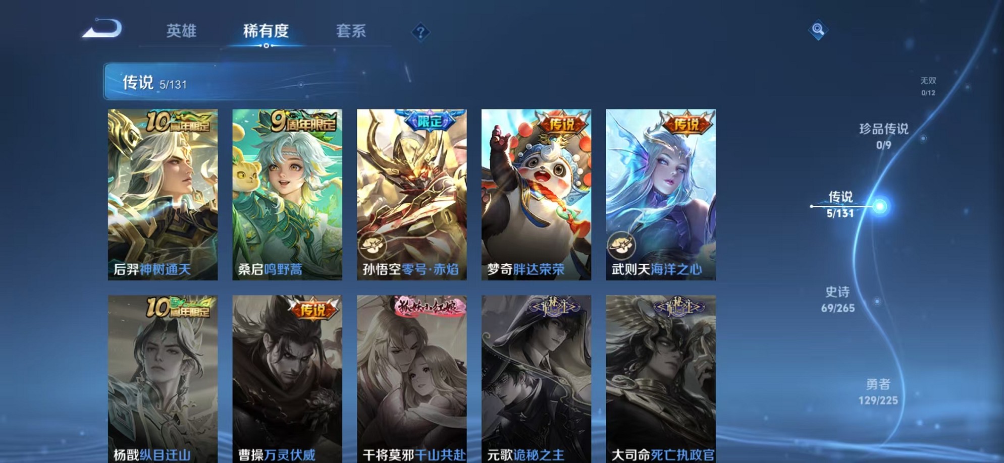 安卓QQ 皮肤255 英雄125 典藏1 传说9 其他皮肤92 至圣王者-