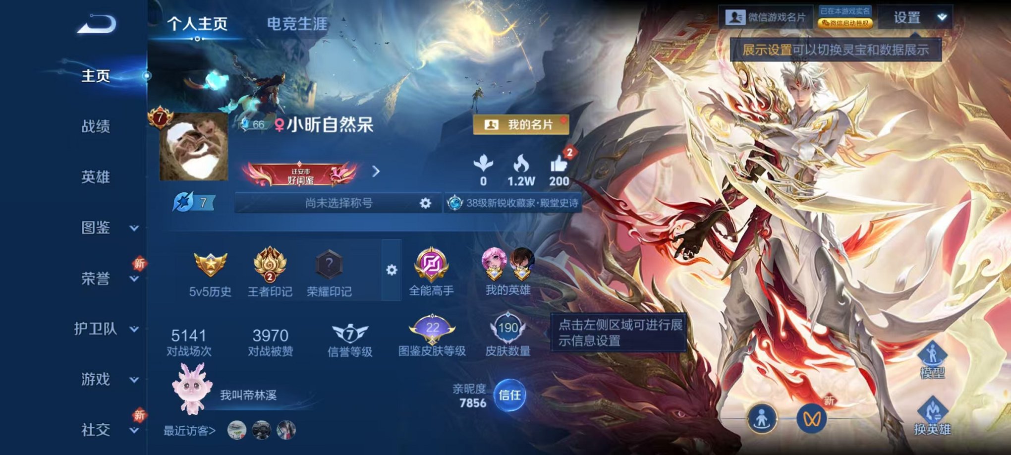 安卓微信 皮肤224 英雄126 传说3 其他皮肤75 至尊星耀-