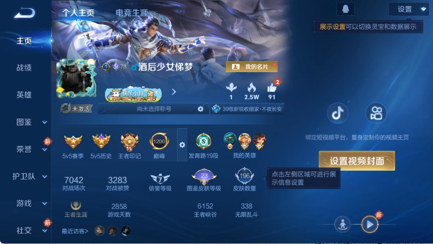 V6 皮肤215 英雄127 至尊星耀 传说10 其他皮肤212