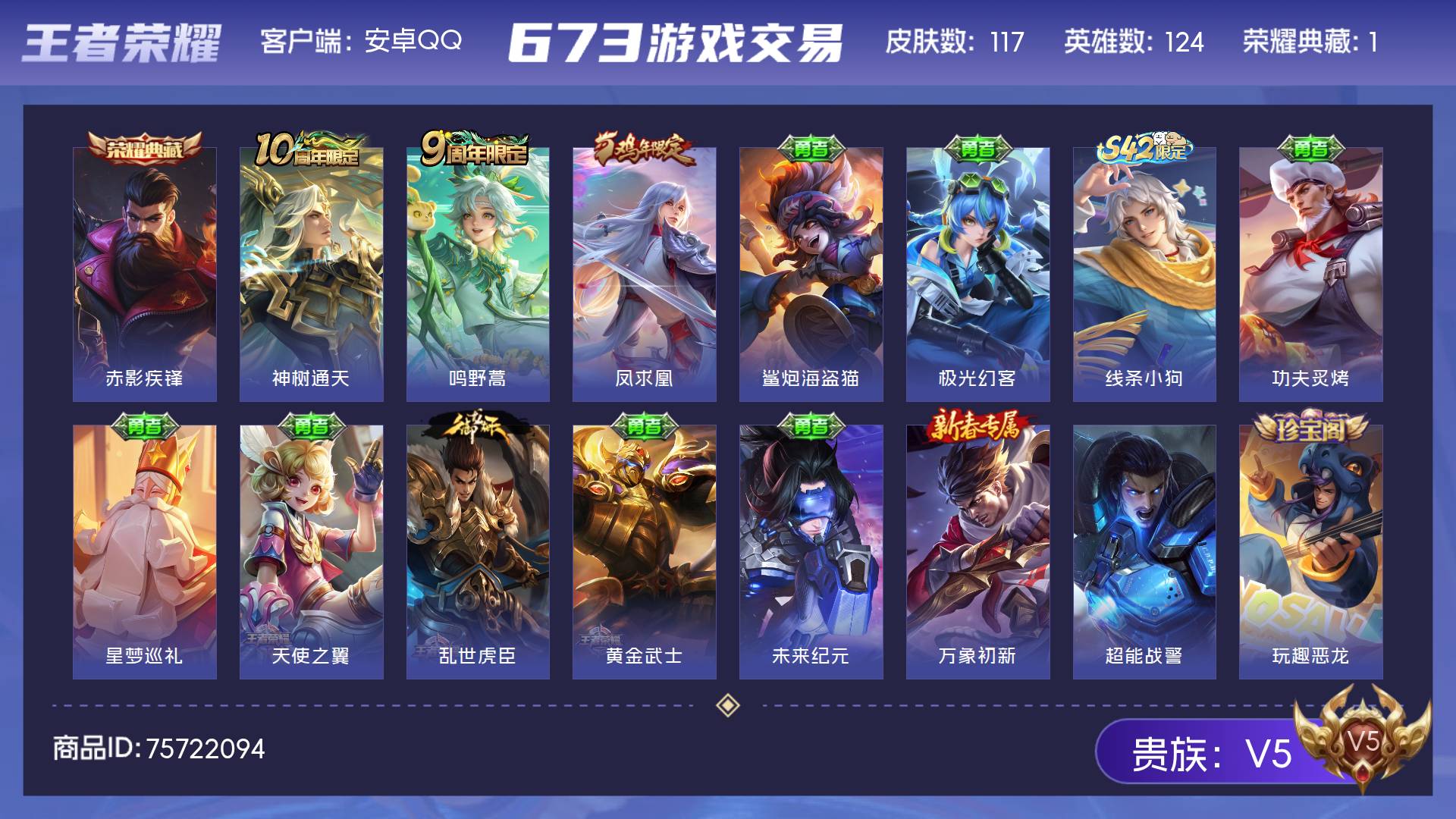 V5 皮肤117 英雄124 最强王者 荣耀典藏1 传说3 其他皮肤119