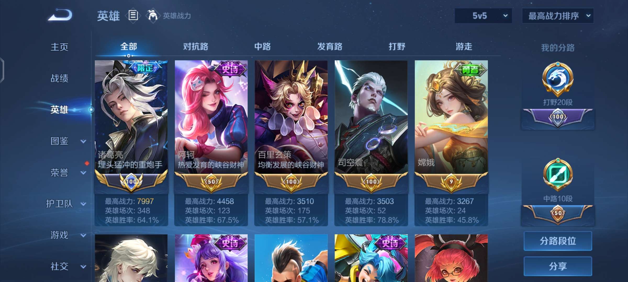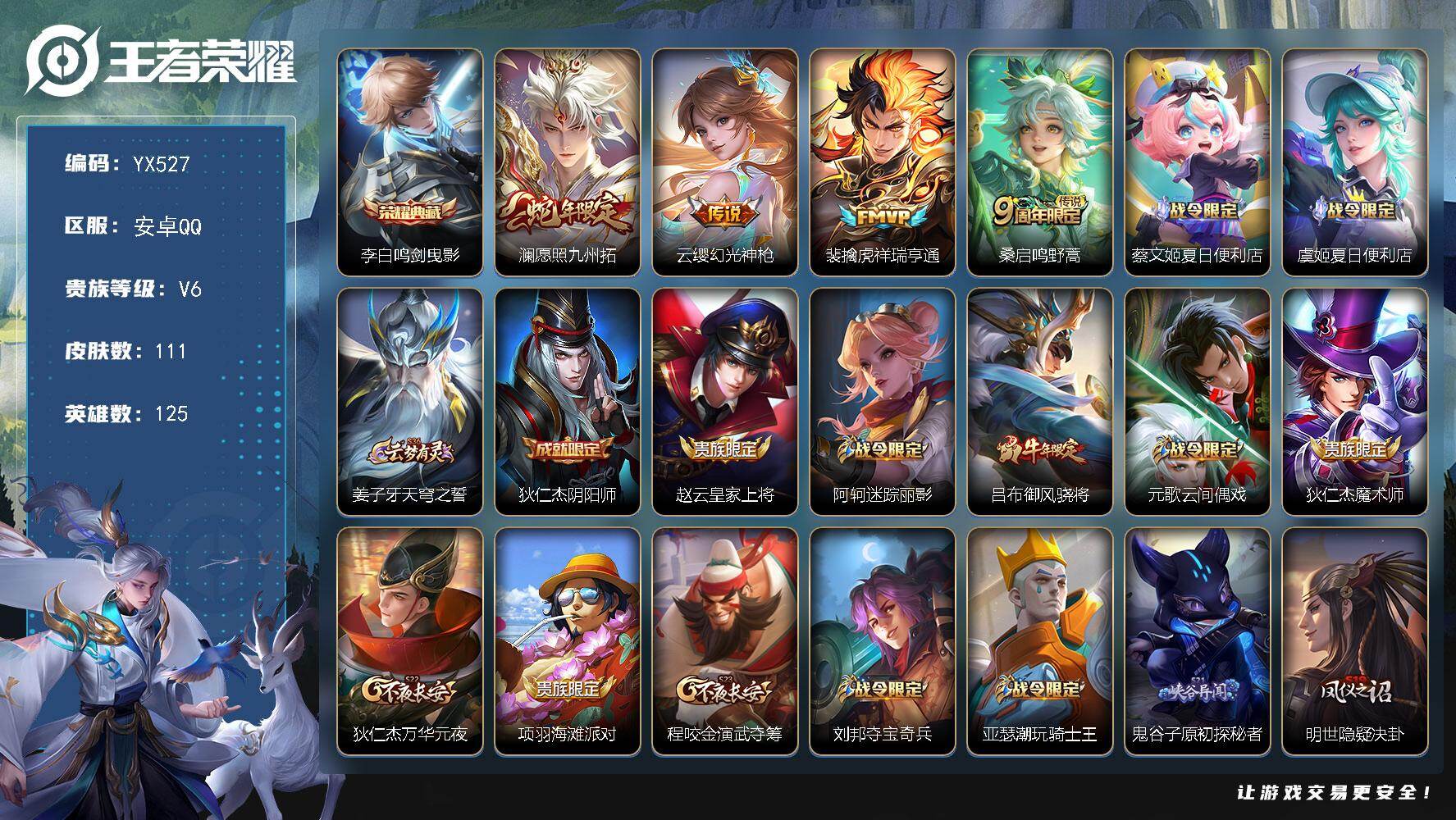 V5 皮肤93 英雄121 非凡王者 传说1 其他皮肤98