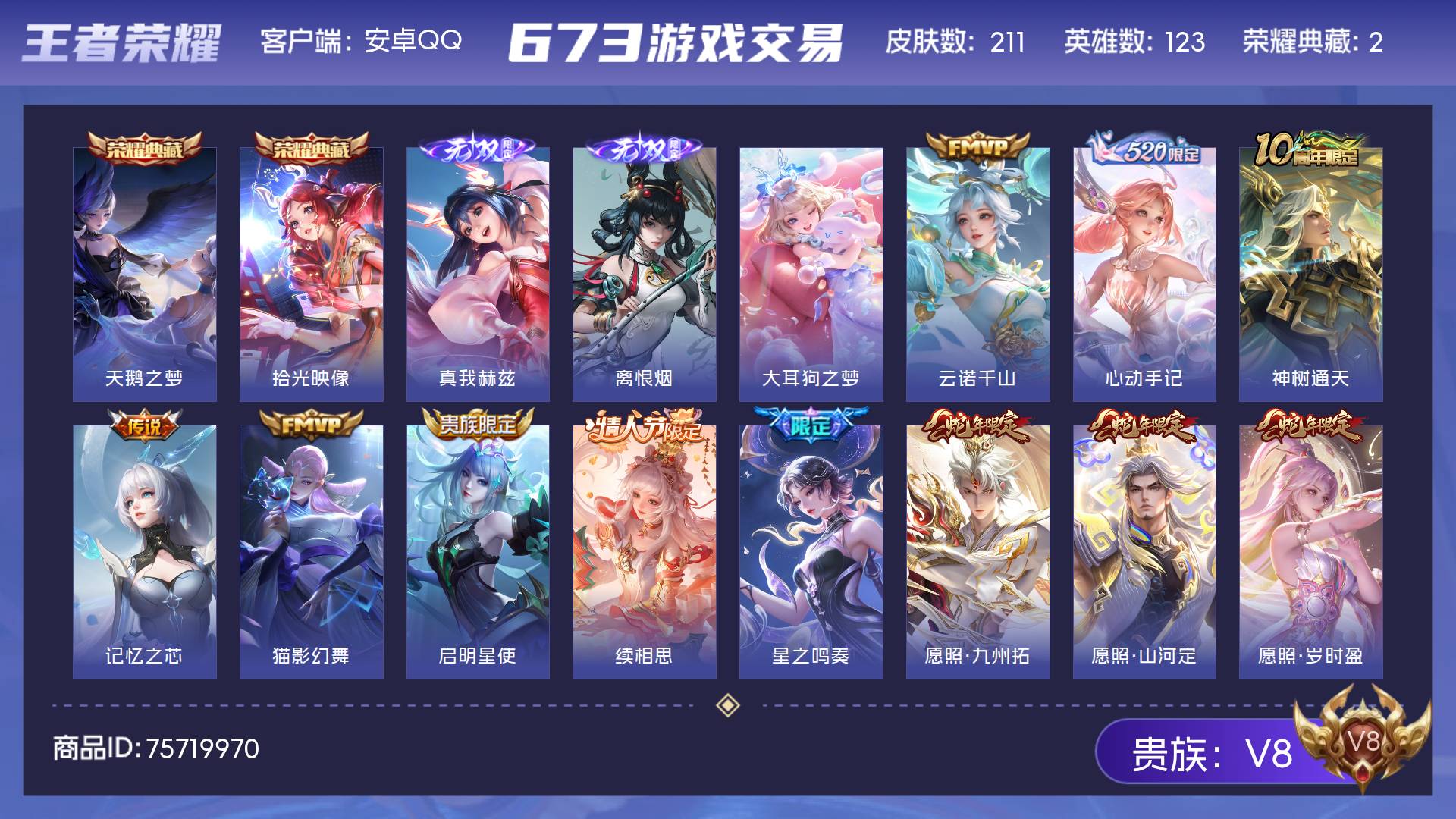 V8 皮肤211 英雄123 至尊星耀 荣耀典藏2 无双皮肤2 珍品传说1 传说21 其他皮肤189