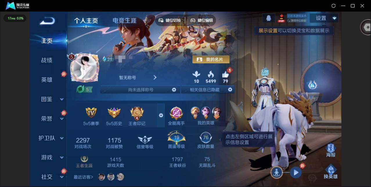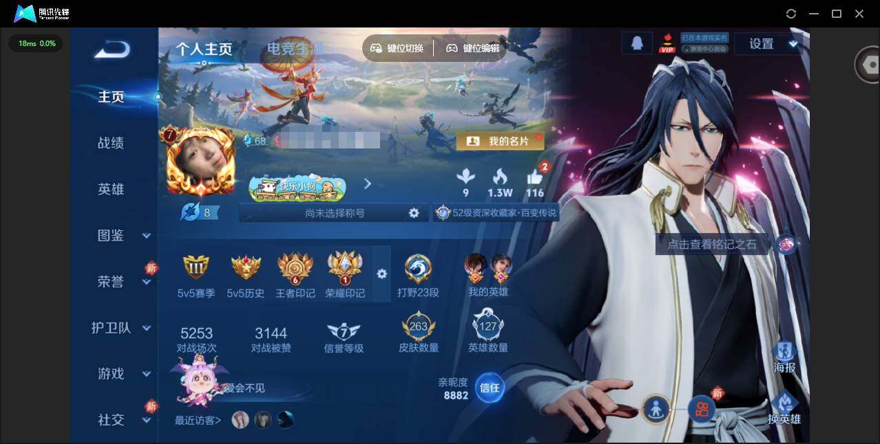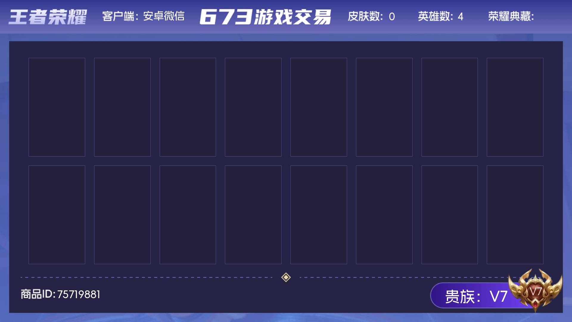贵族等级: V7 英雄数: 127 皮肤数: 263 荣耀水晶: 银白咏叹调