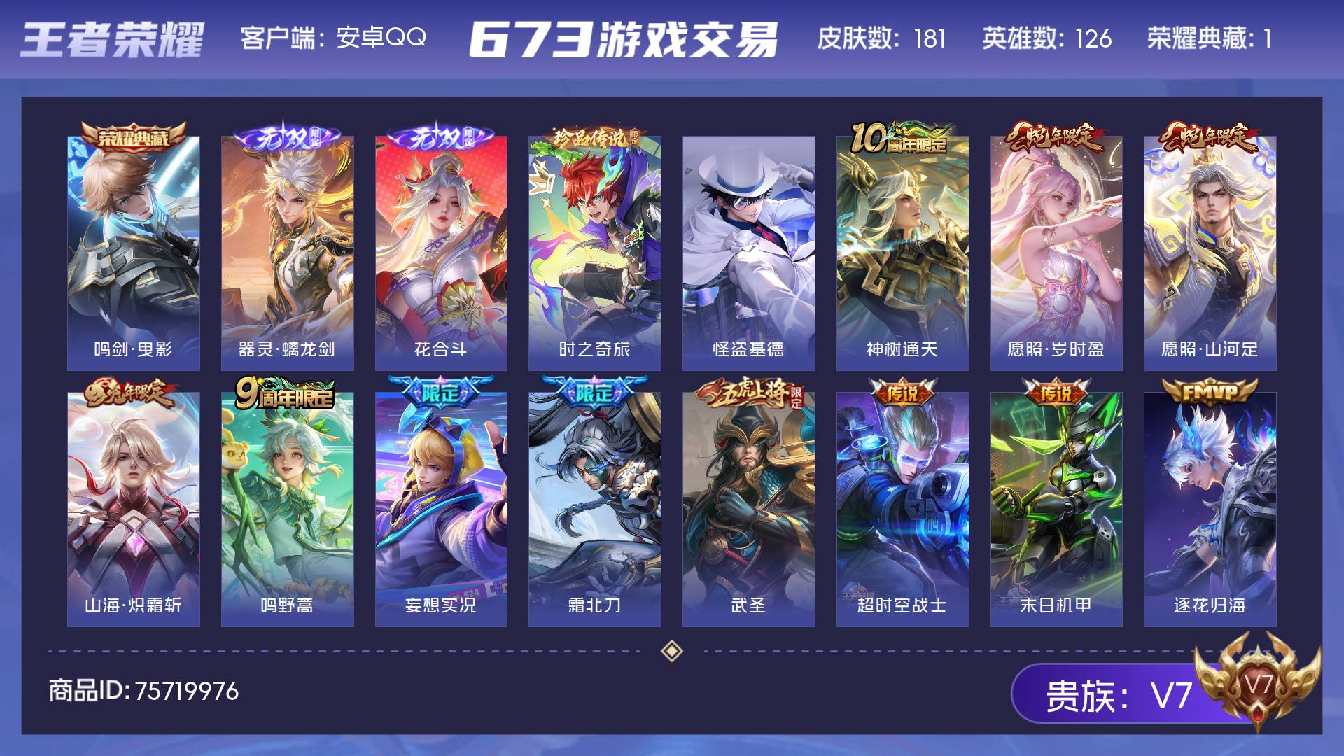 V7 皮肤181 英雄126 无双王者 荣耀典藏1 无双皮肤2 珍品传说2 传说16 其他皮肤166