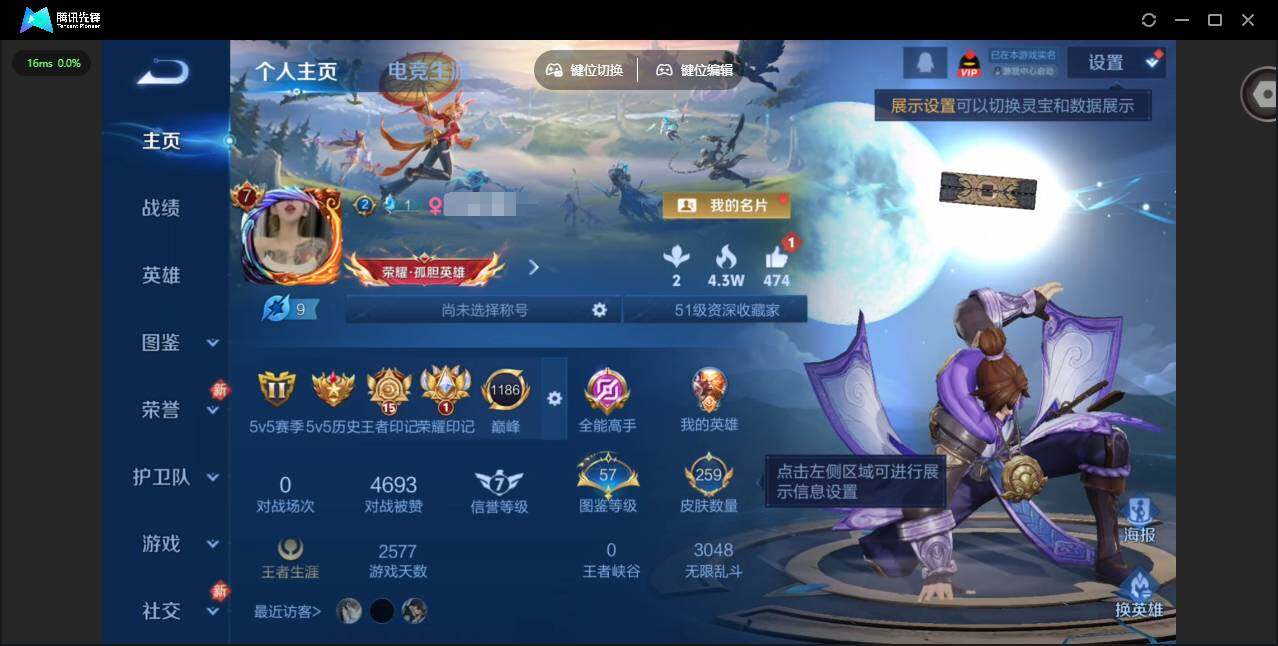 贵族等级: V6 英雄数: 110 皮肤数: 76 传说皮: 零号·赤焰,无双