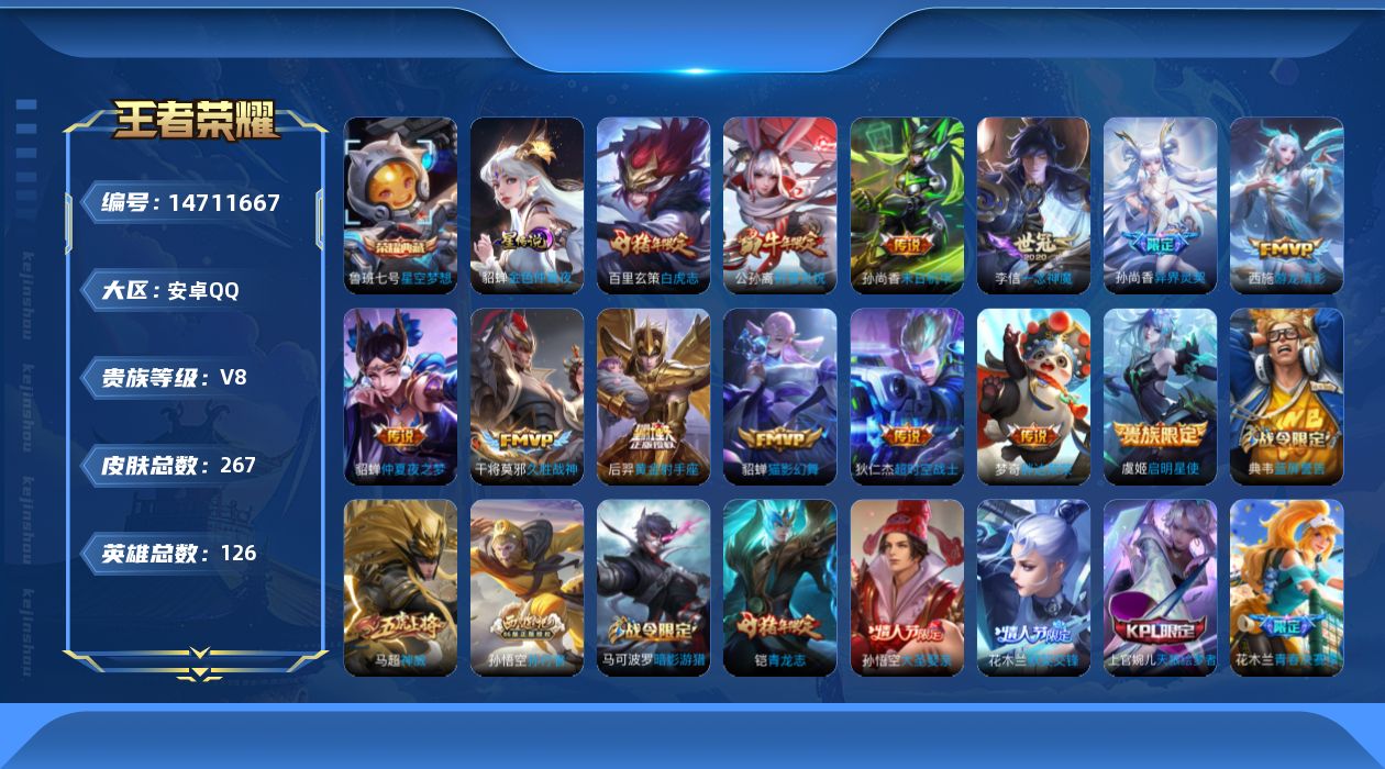 安卓Q-V8-127英雄-245皮肤-3典藏皮肤-1典藏英雄-11传说-64史