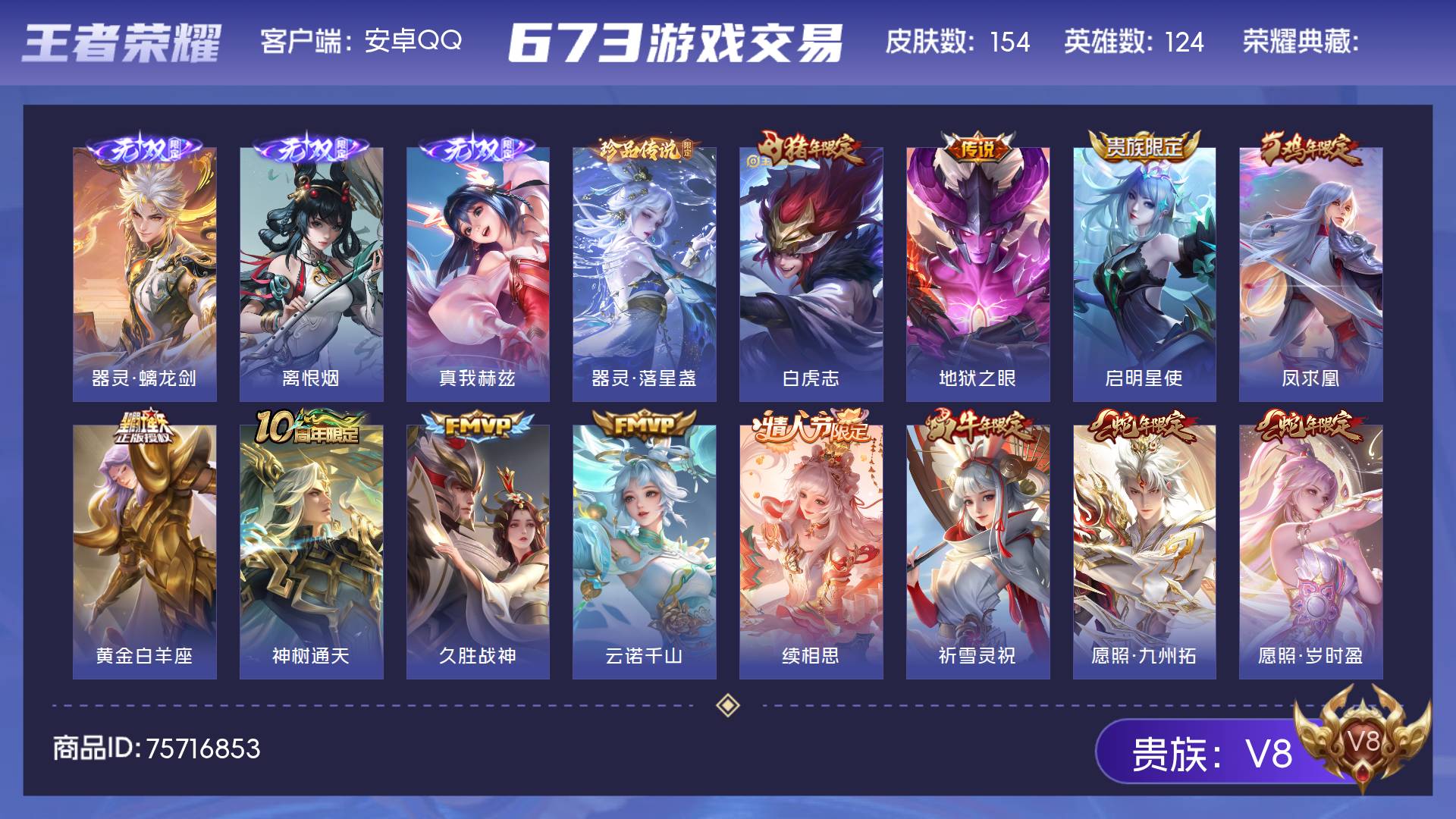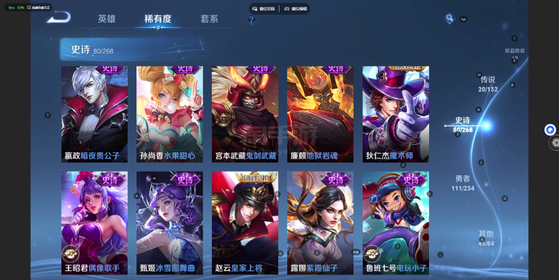 V8 皮肤154 英雄124 无双王者 无双皮肤3 珍品传说1 传说17 其他皮肤132