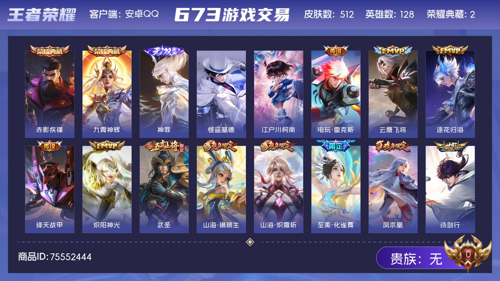 皮肤512 英雄128 无双王者 荣耀典藏2 无双皮肤1 珍品传说2 传说80 其他皮肤430-安卓q-可二次-v10