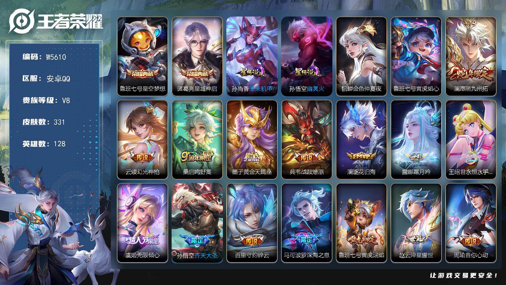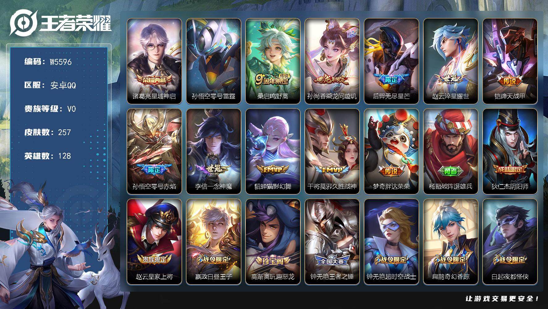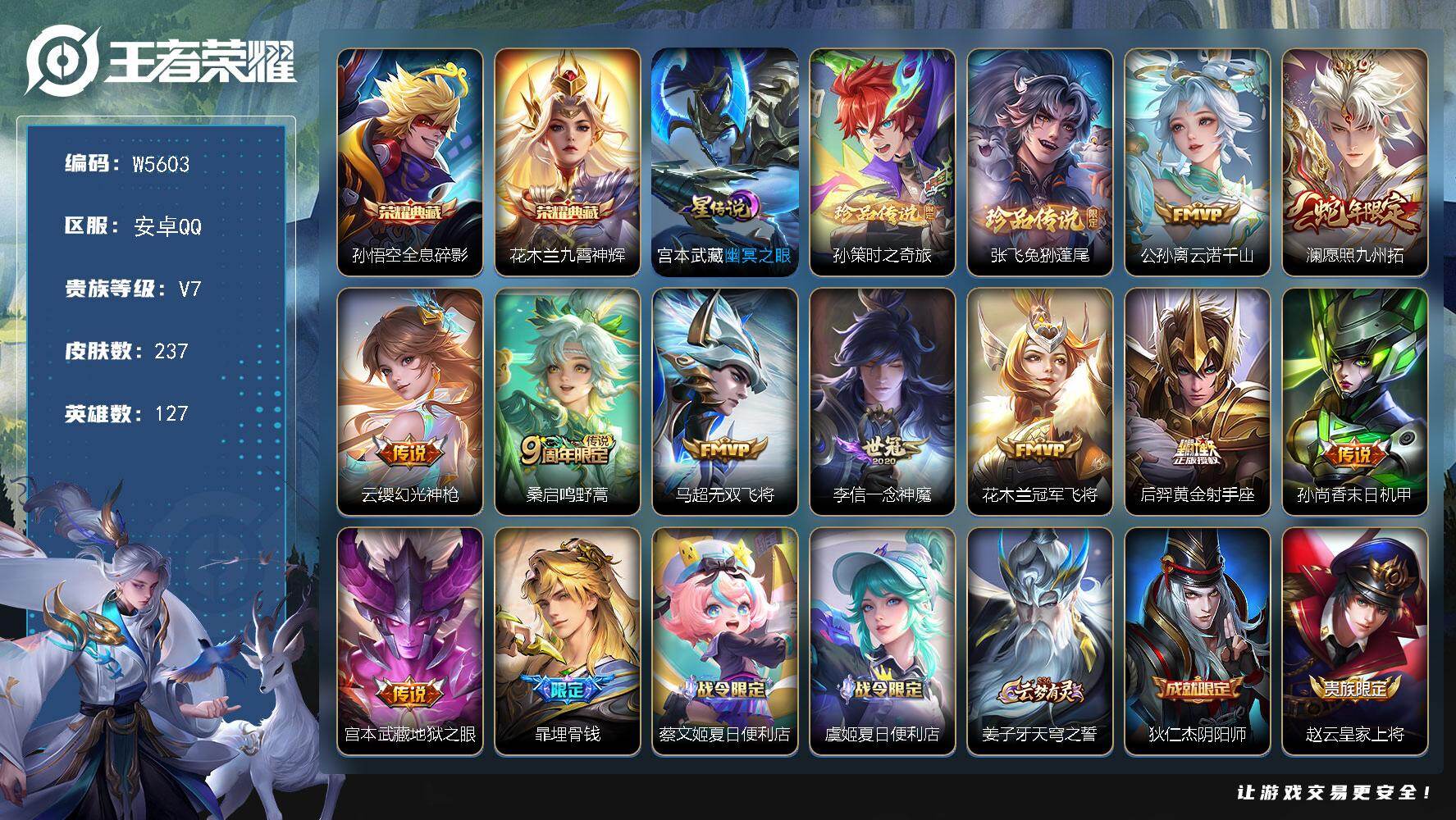 安卓Q-有二次-贵7-127英雄-237皮肤-2典藏-10传说-2珍品-66限定