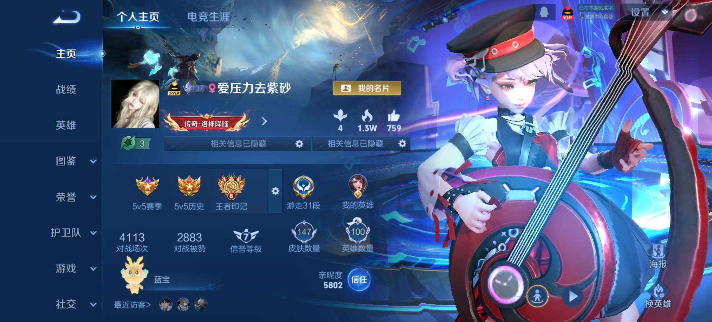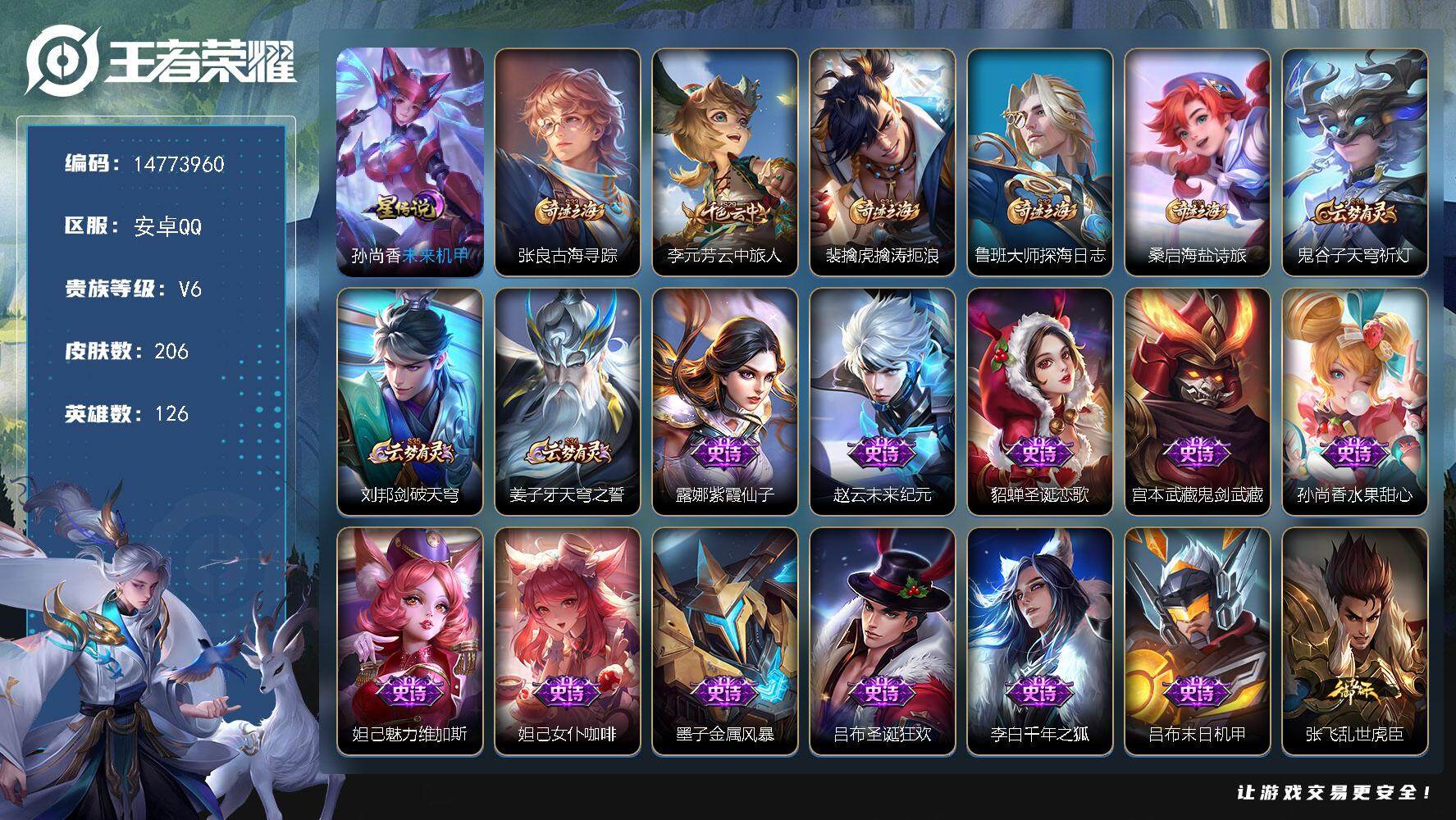 安卓QQ-1典藏-4传说-147皮肤-100英雄-至圣王者-软辅妹妹号 可以当小号练练手
