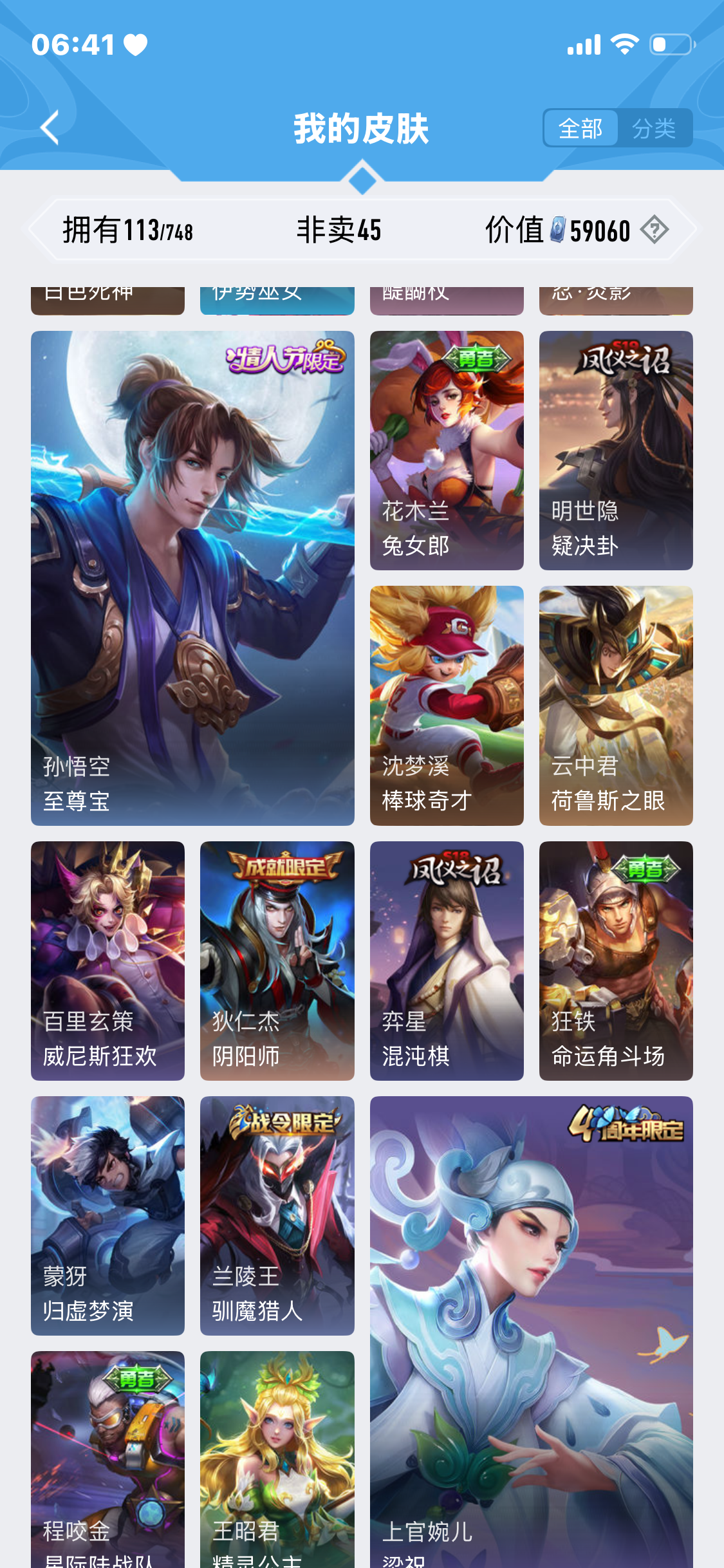 极品女号V10特价处理皮肤数442皮肤价值425446无双皮