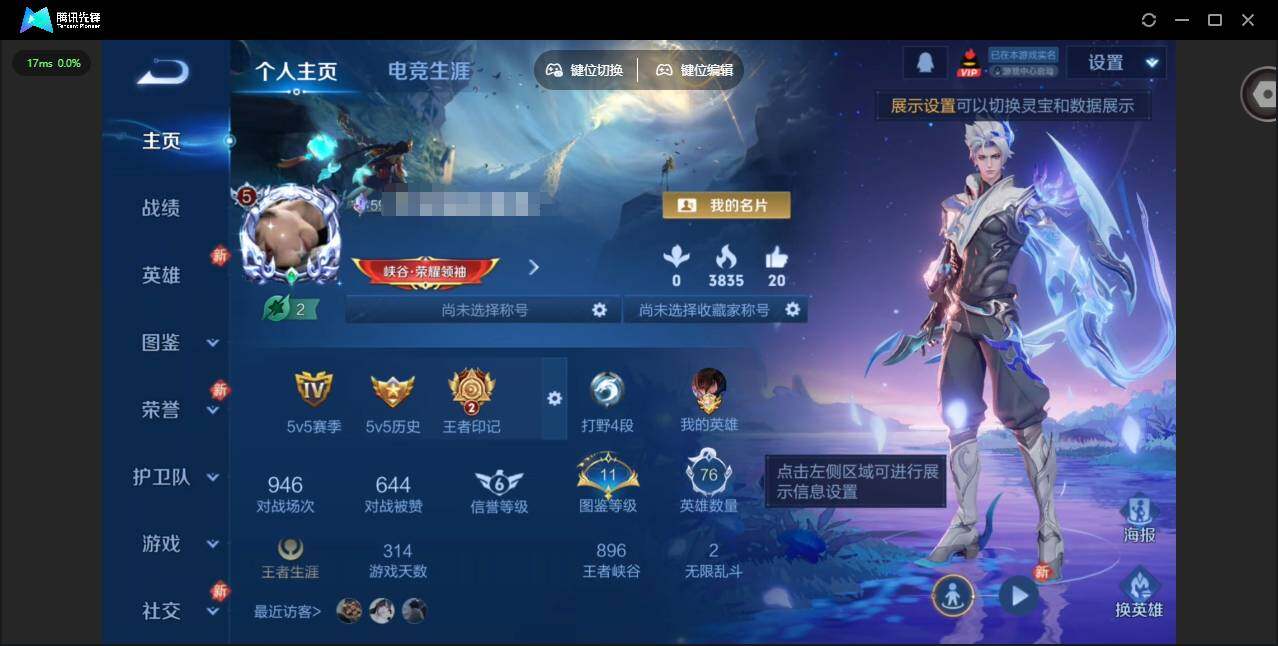 贵族等级: V5 英雄数: 76 皮肤数: 42 星传说: 幽冥火 传说皮: