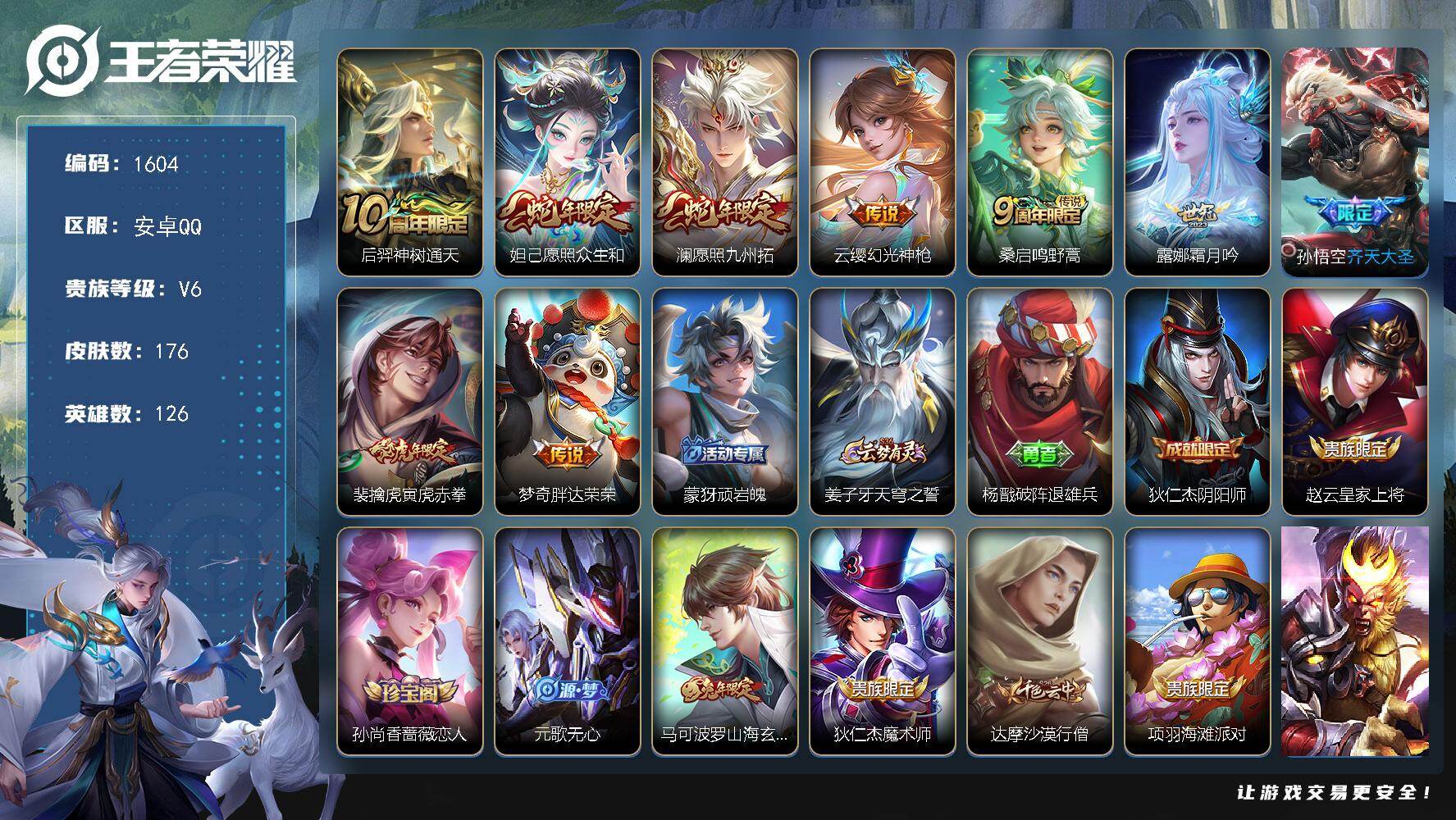 【152皮肤1水晶5传说1星元 秒换绑不用等】安卓QQ-124英雄-152皮肤【