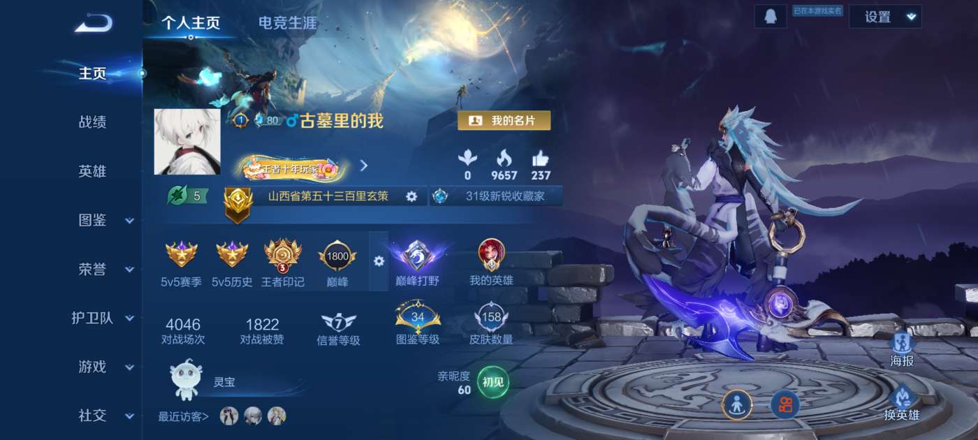 贵族等级: V2 英雄数: 125 皮肤数: 159 星传说: 幽冥火 传说皮