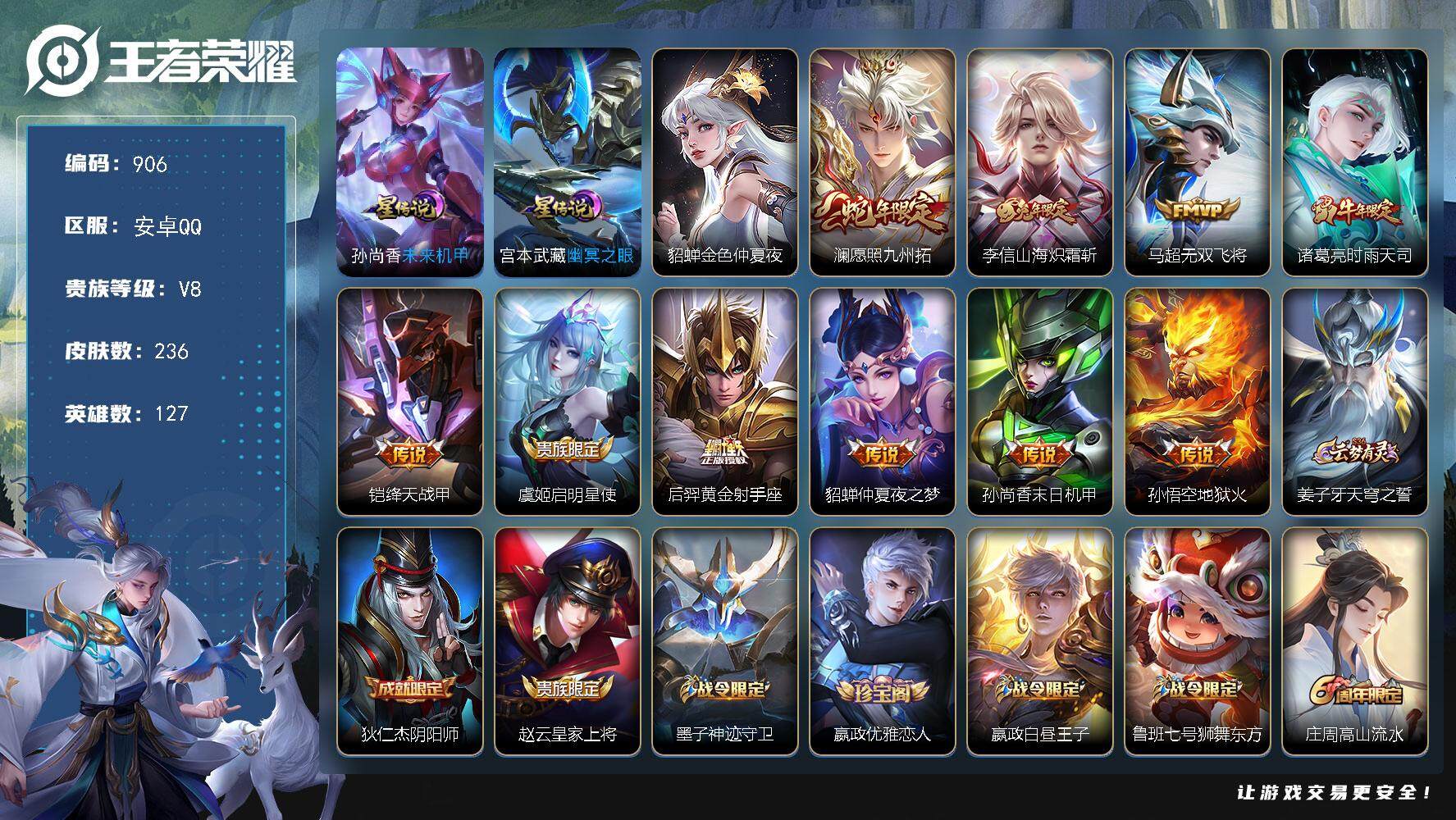 安卓QQ-8传说-221皮肤-125英雄-至尊星耀-