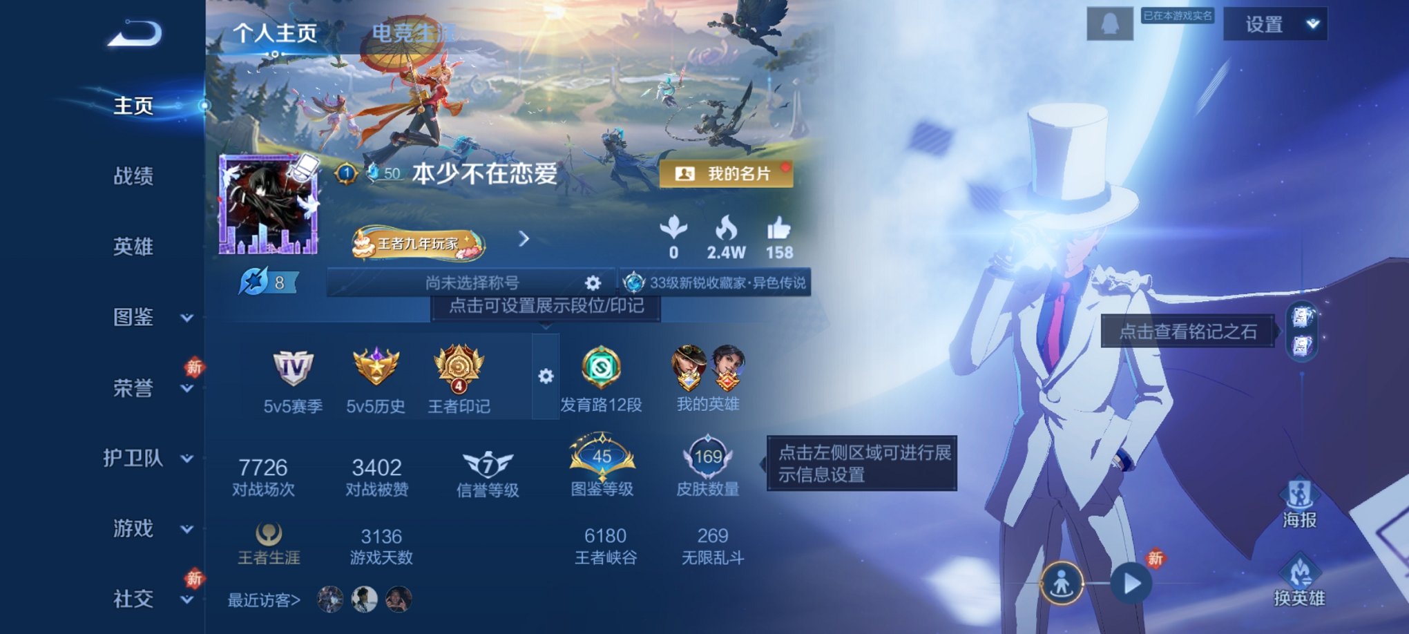 V9 皮肤420 英雄128 至尊星耀 荣耀典藏3 无双皮肤3 传说29 其他皮肤388
