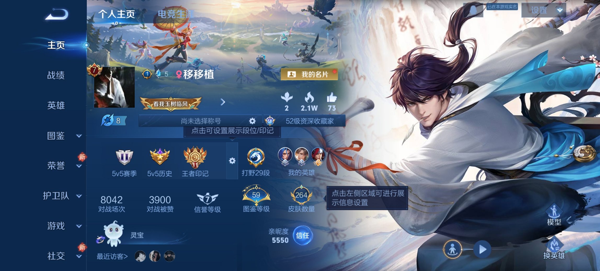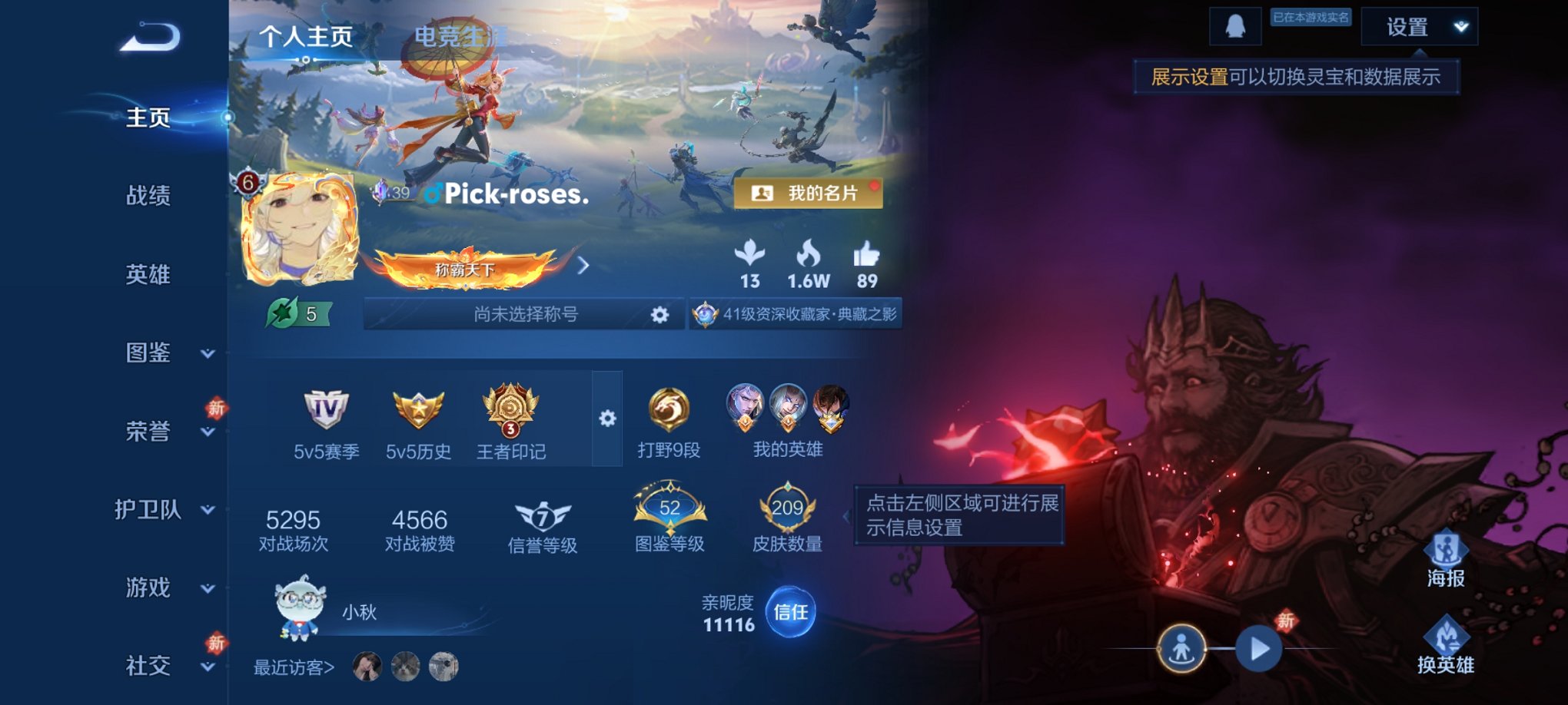 【5金标老虎李信露娜万战海诺打野41段152皮肤6传说1星元逐花归海 秒换绑不用
