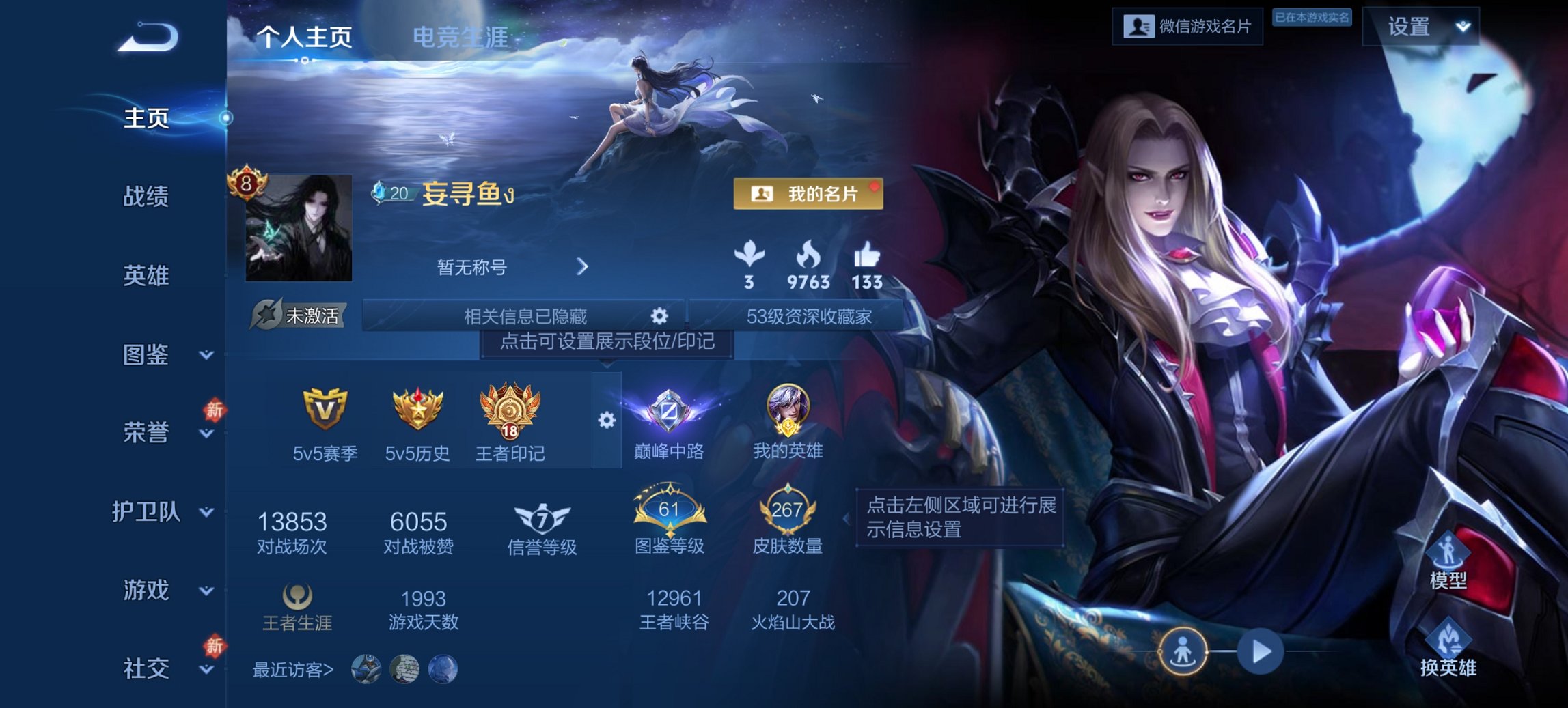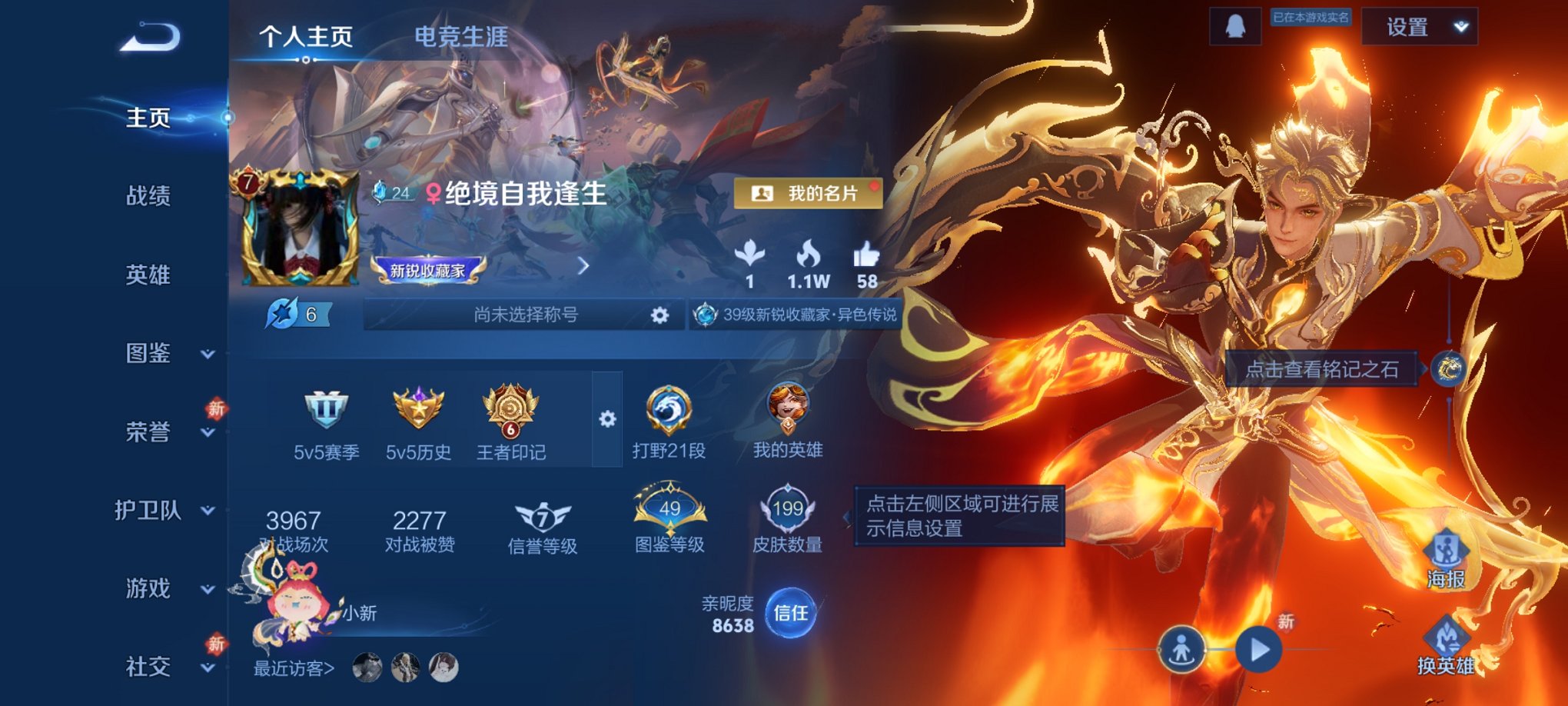 【W5313】极品低场次打野号-打野32段-万战.海诺(热门皮肤)银白咏叹调.