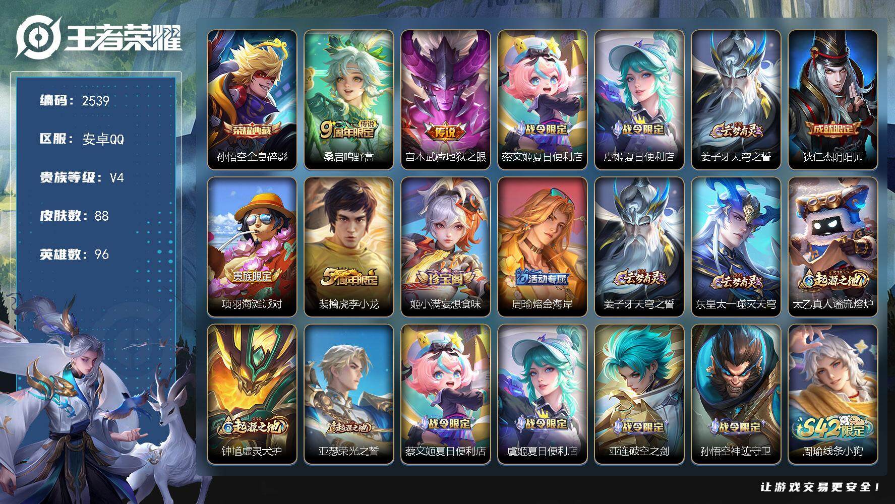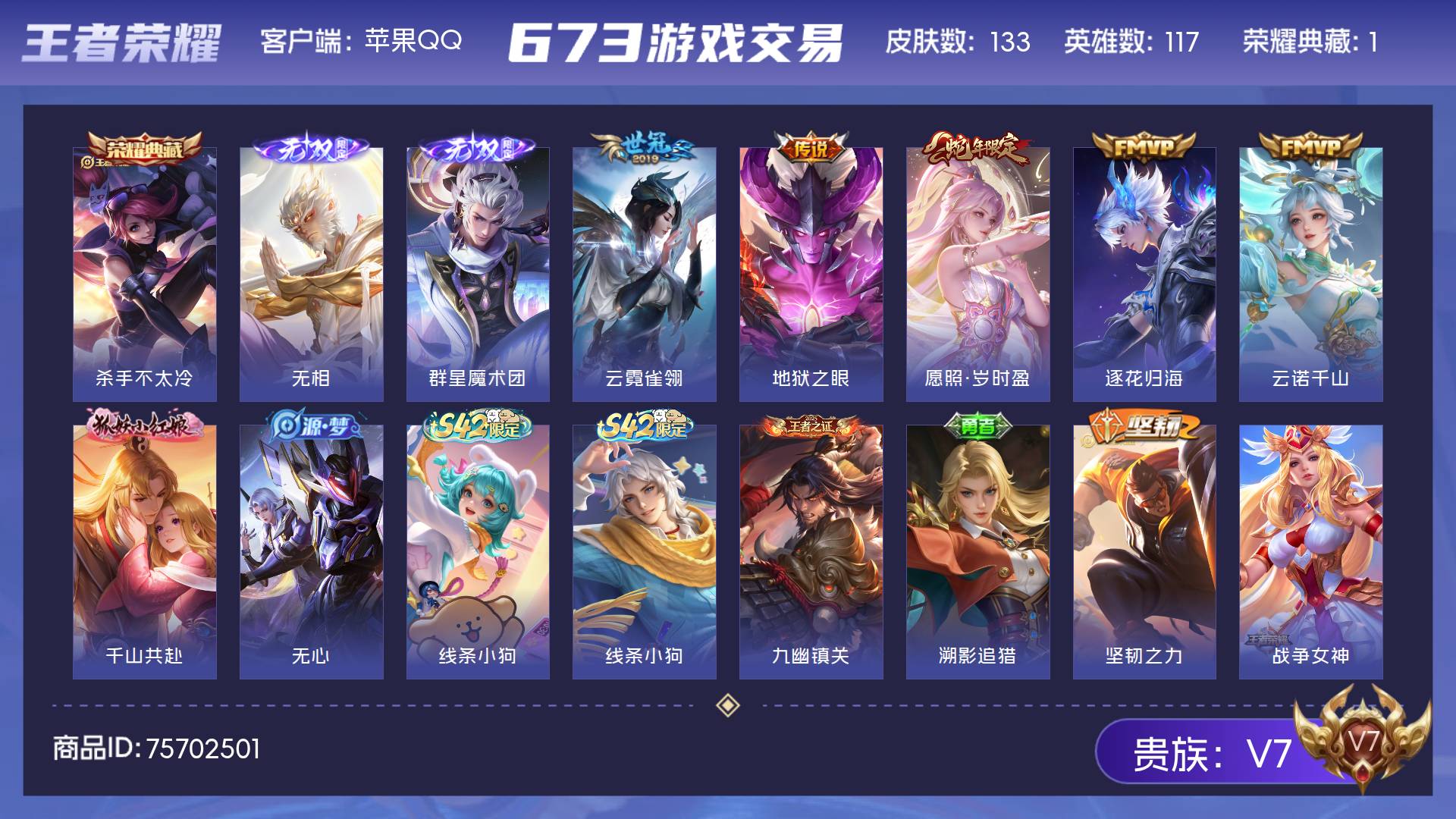 V7 皮肤133 英雄117 至尊星耀 荣耀典藏1 无双皮肤2 传说6 其他皮肤129