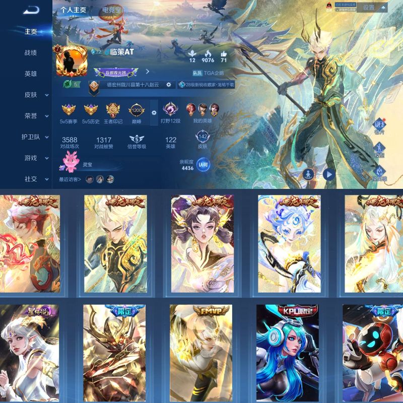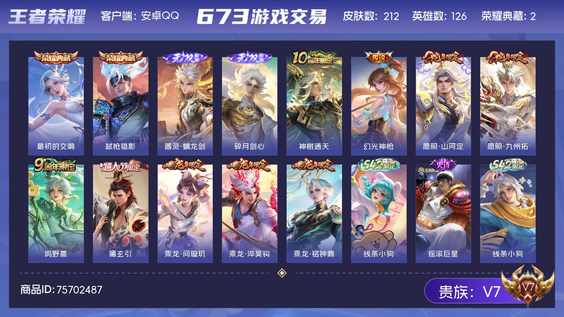 V7 皮肤212 英雄126 至尊星耀 荣耀典藏2 无双皮肤2 传说9 其他皮肤205