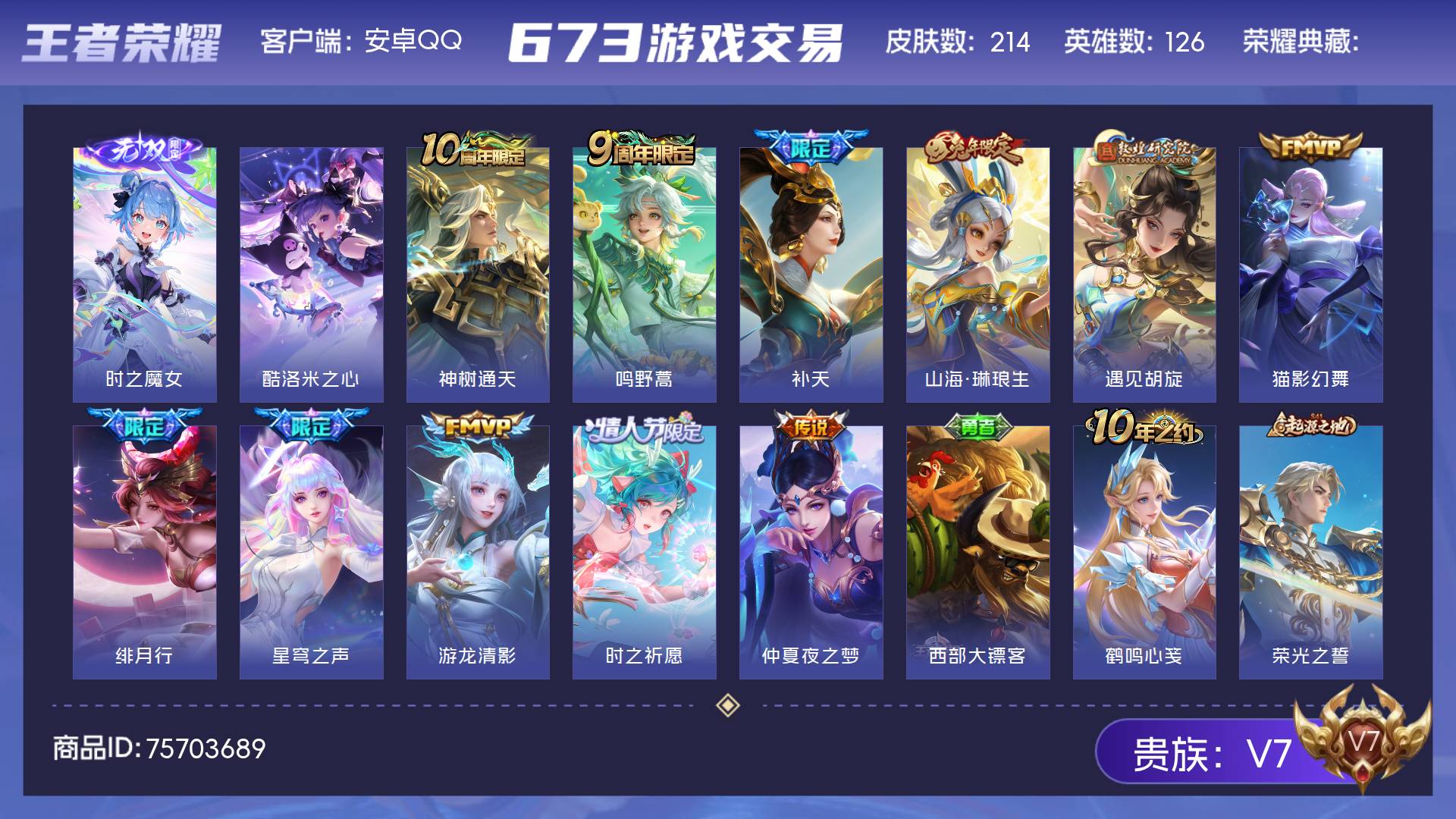 V7 皮肤214 英雄126 永恒钻石 无双皮肤1 珍品传说1 星传说1 传说11 其他皮肤207