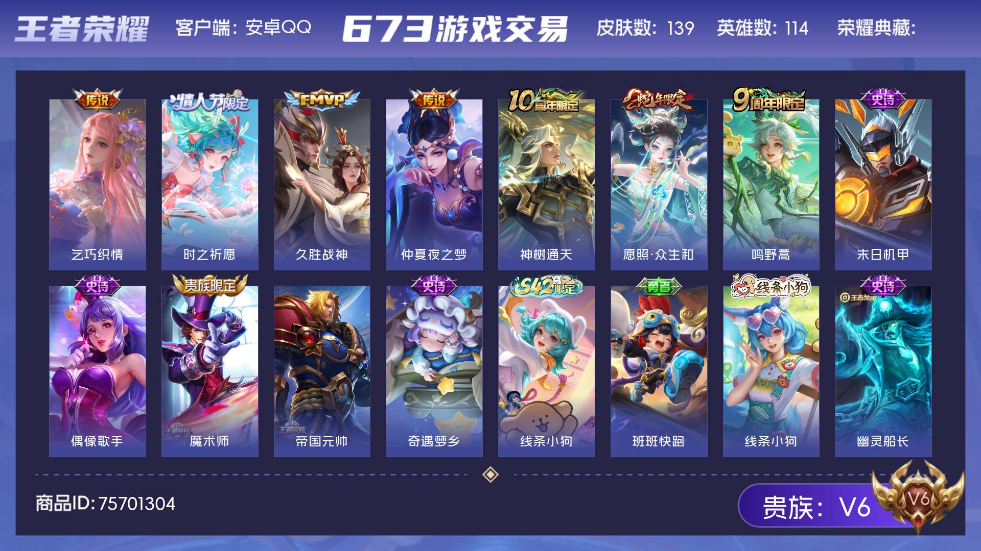 V6 皮肤139 英雄114 最强王者 星传说1 传说7 其他皮肤134