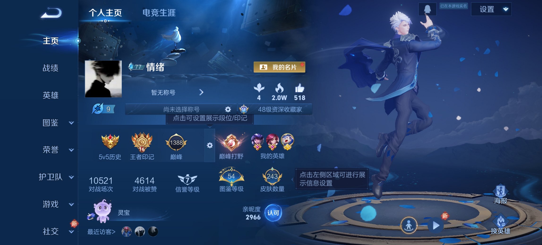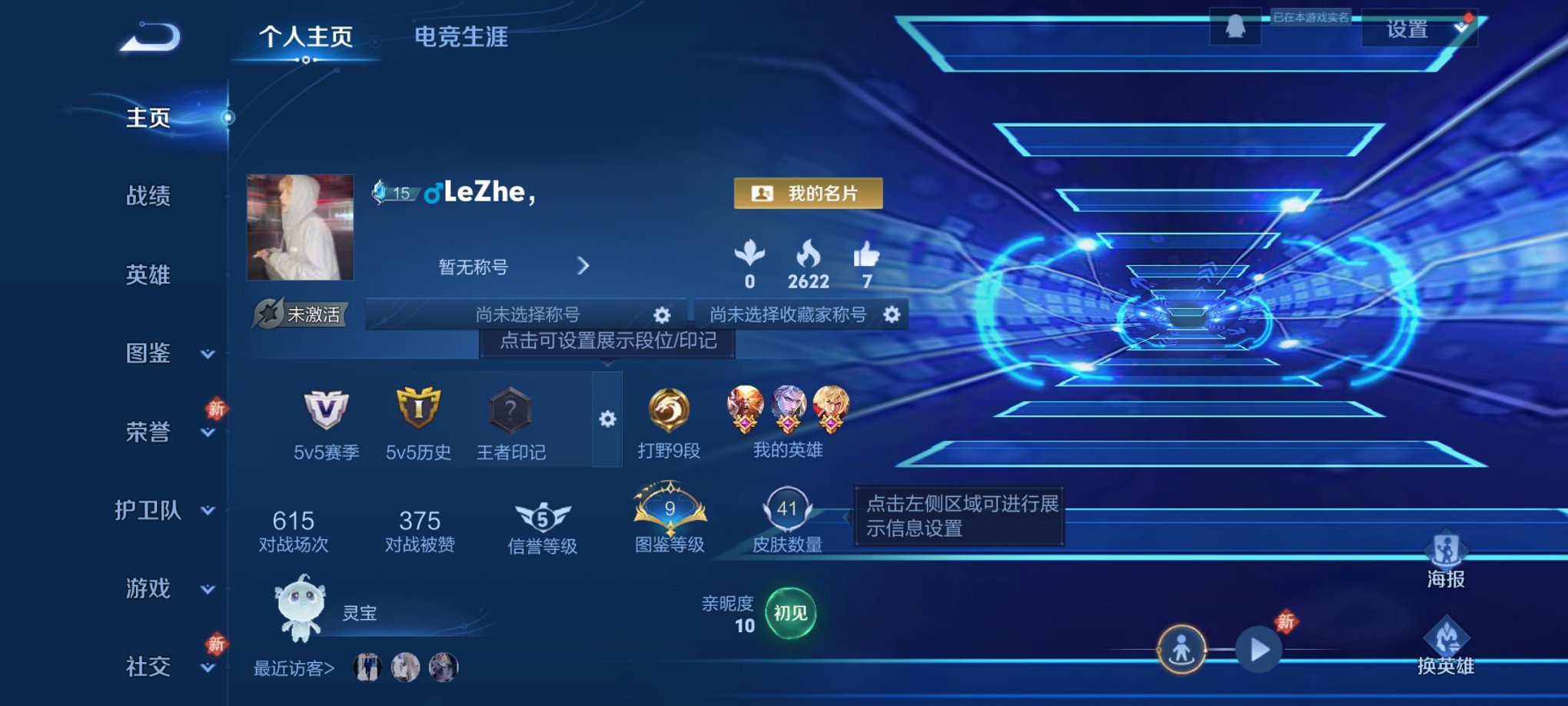 贵族等级: V9 英雄数: 128 皮肤数: 391 荣耀水晶: 全息碎影,九
