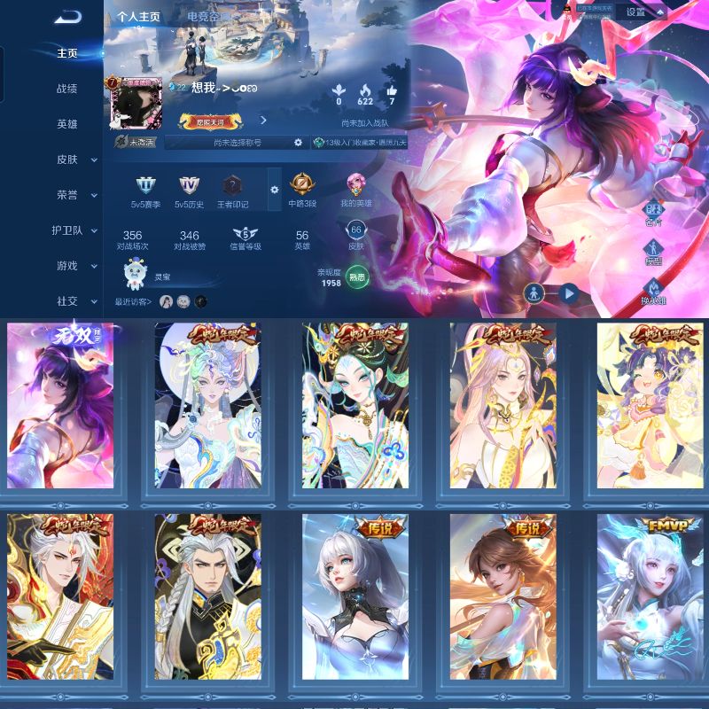 贵族等级: V9 英雄数: 128 皮肤数: 391 荣耀水晶: 全息碎影,九