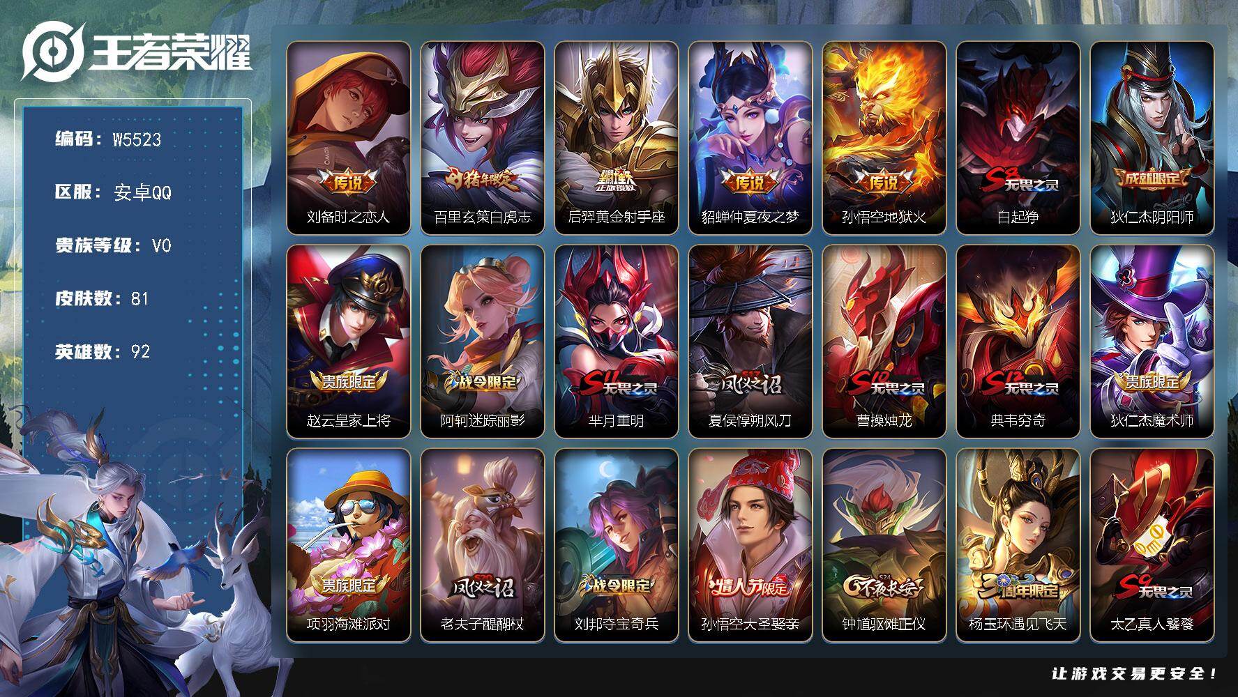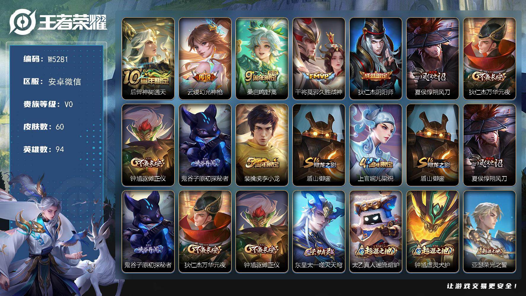 【W5281】5年微信-安卓微信-有二次-贵2-94英雄-60皮肤-4传说-2