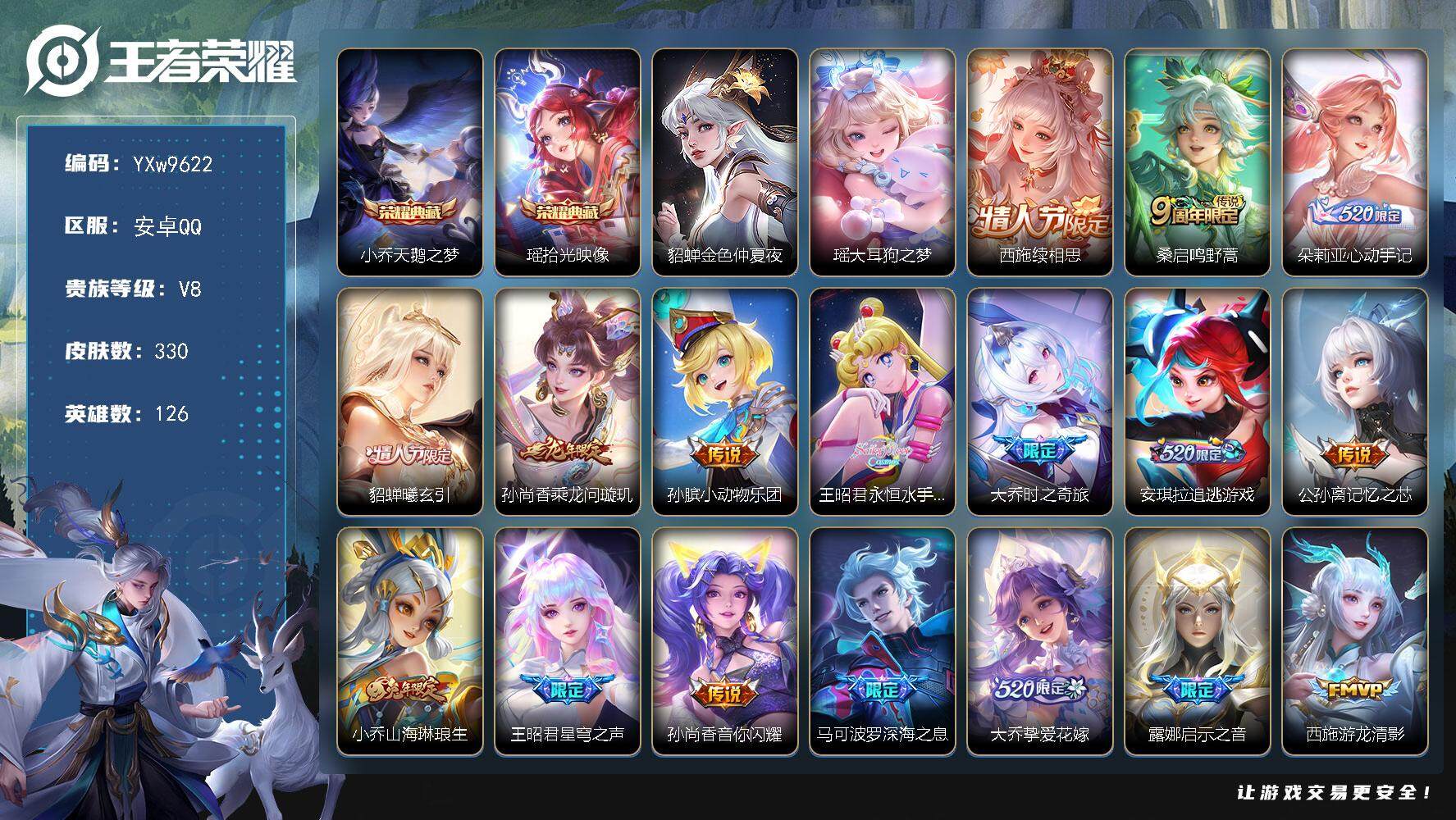 皮肤175 英雄126 永恒钻石 传说9 其他皮肤61-【空水晶小号 9传说 赵云孙策龙年限定 铠琥珀纪元 刘备时之恋人】安卓Q-V6
